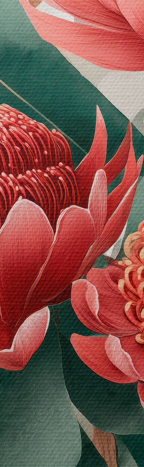 carta da parati Bouquet espressivo di protee e fogliame decorativo in stile illustrazione artistica moderna nr. s46954