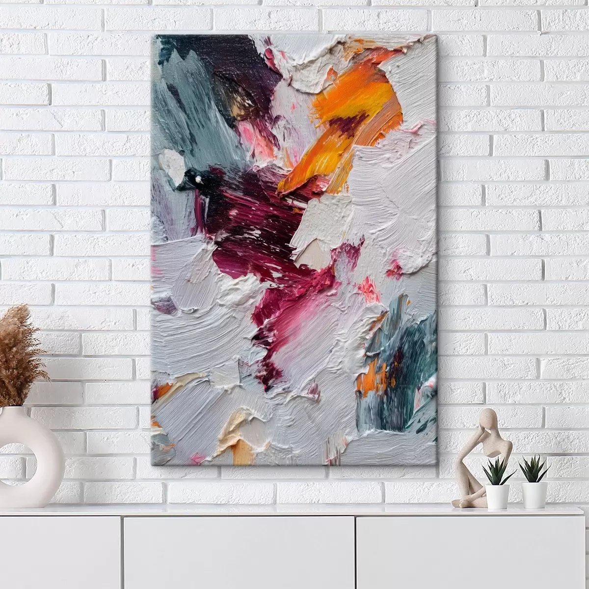 Quadri Composizione astratta con intense pennellate color ciliegia e arancione in stile pittura a olio Nr s46959