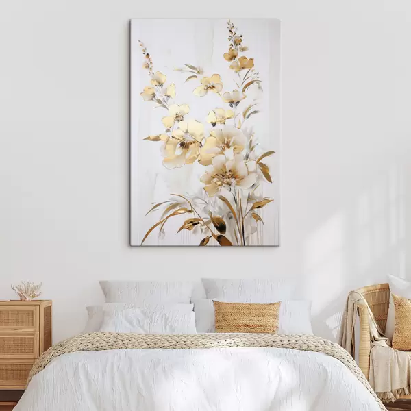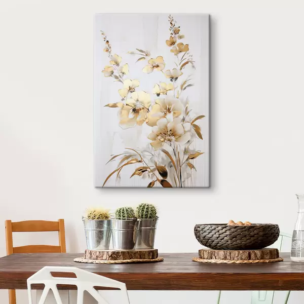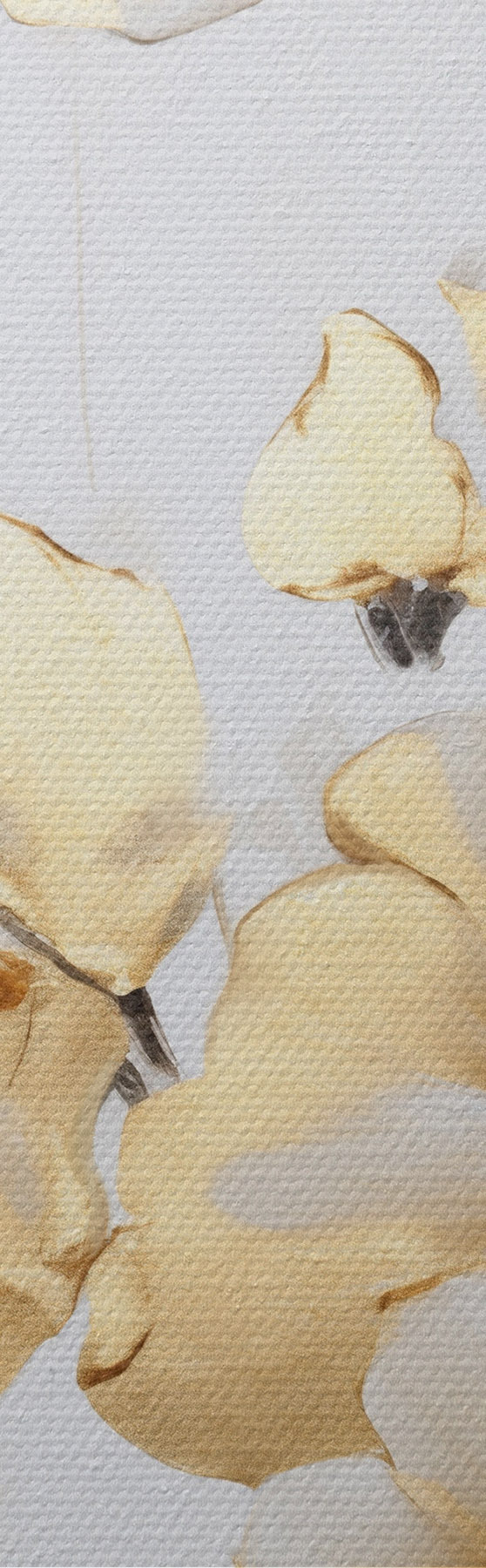 Quadri Fiori e foglie gialli testurizzati su sfondo bianco, con delicate pennellate Nr s47016