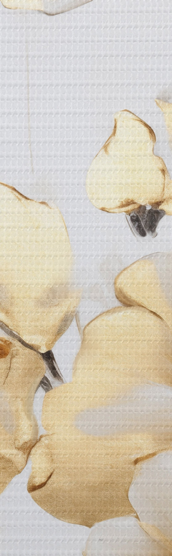 carta da parati Fiori e foglie gialli testurizzati su sfondo bianco, con delicate pennellate nr. s47016