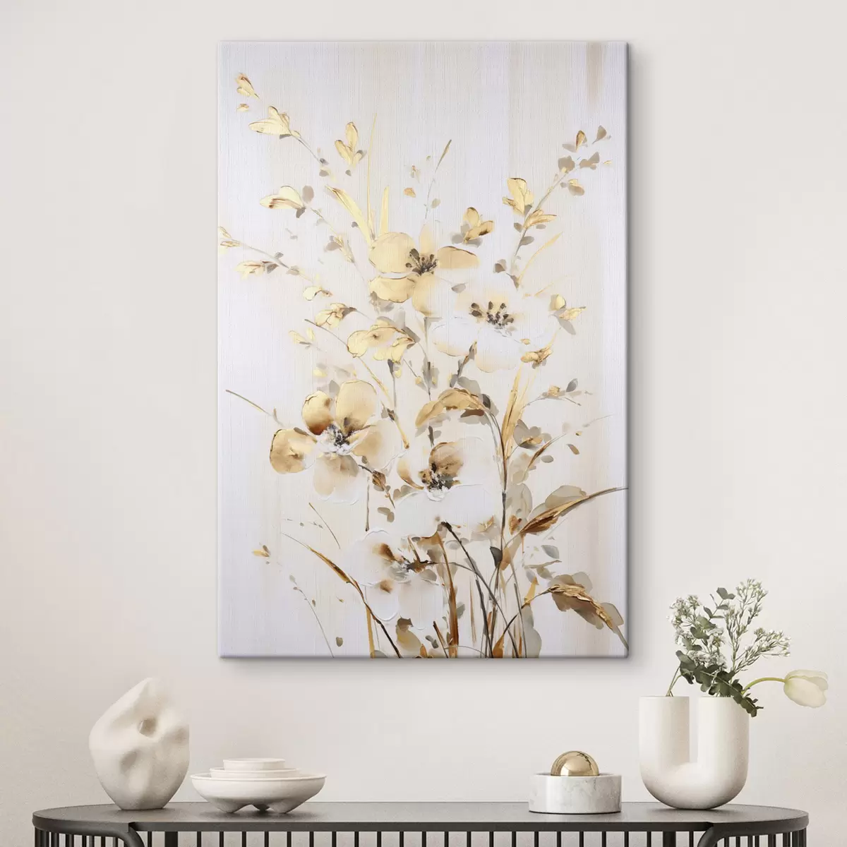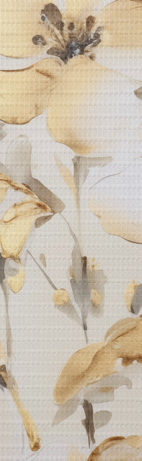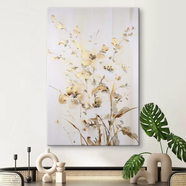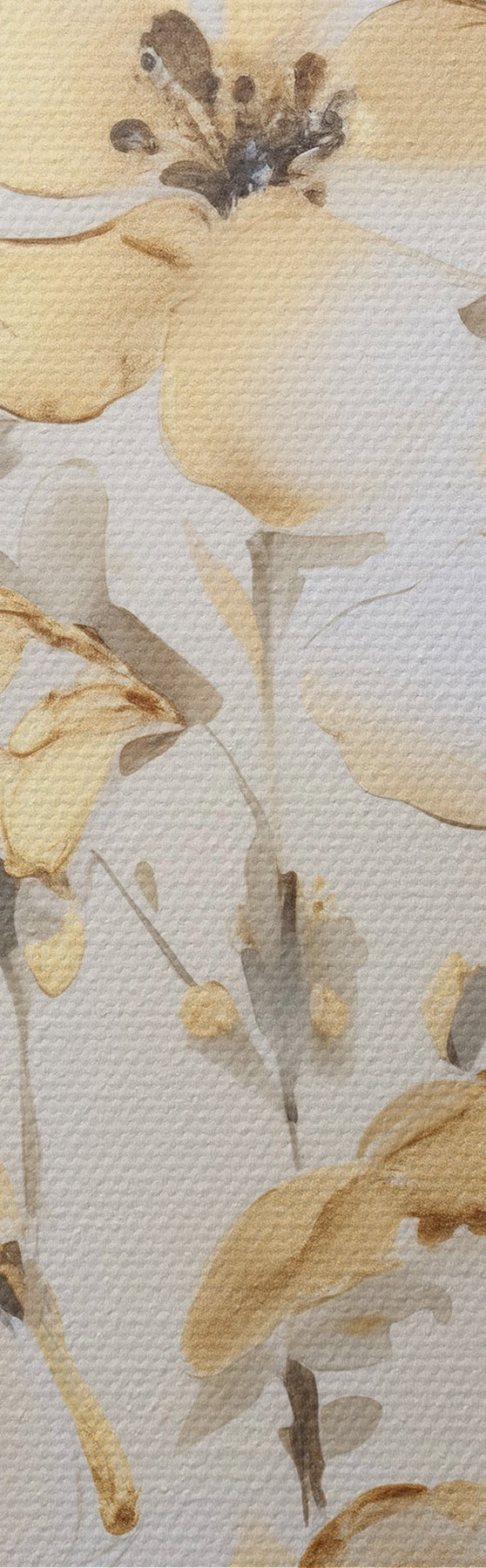 Quadri Fiori e foglie gialli testurizzati su sfondo bianco, con delicate pennellate Nr s47017