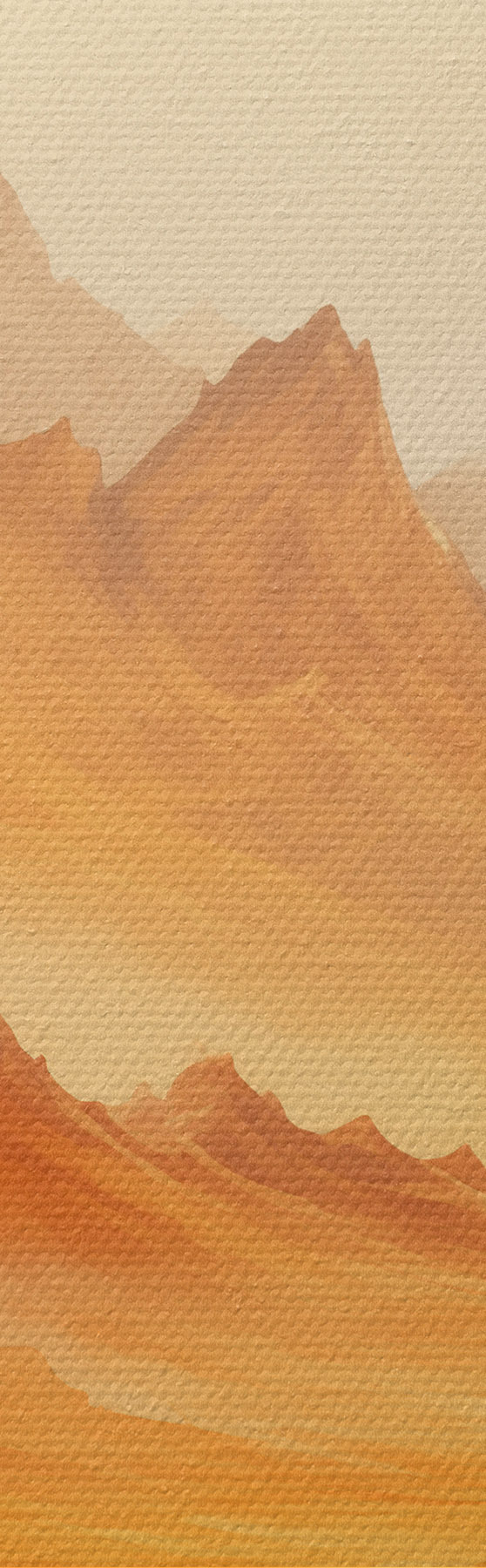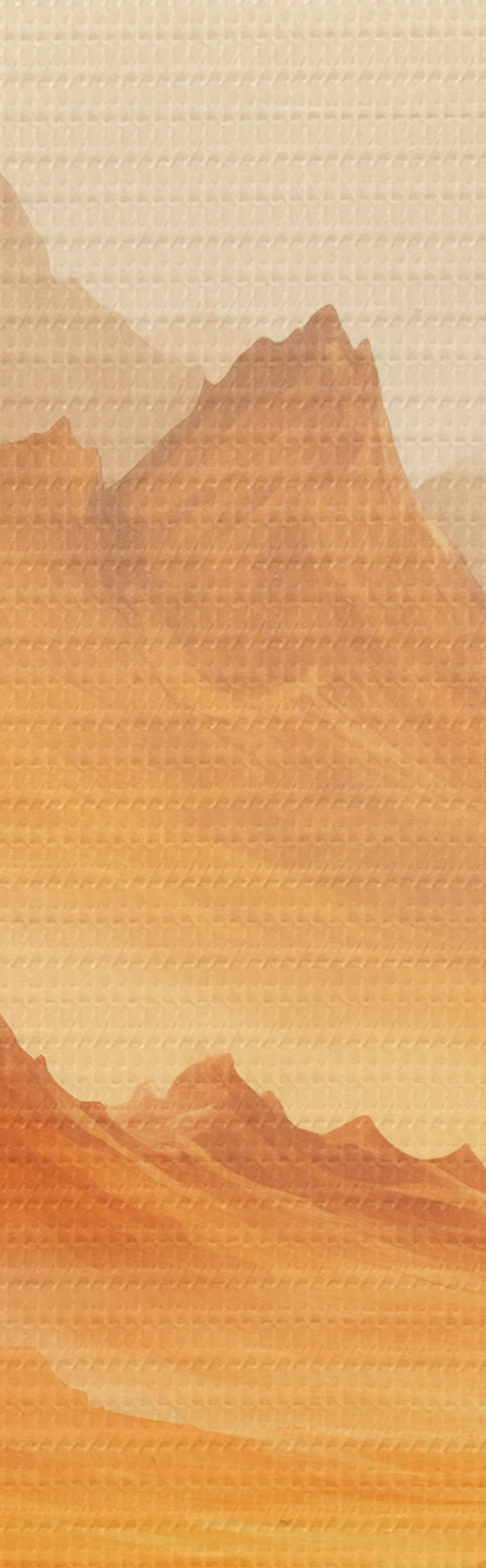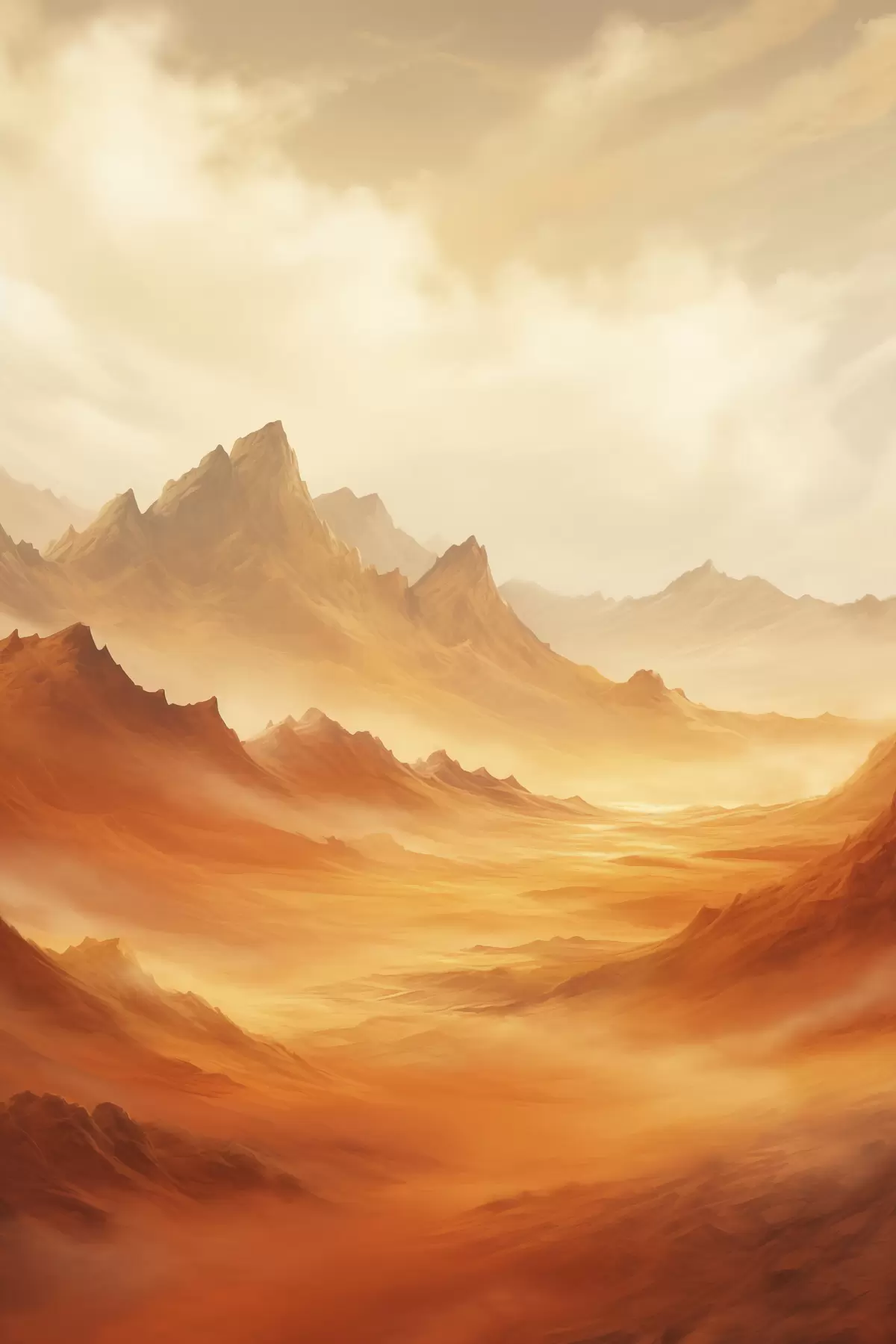 carta da parati Un vasto paesaggio desertico arancione con imponenti montagne rocciose sotto un cielo nebbioso e soleggiato con nuvole sottili. nr. s47029