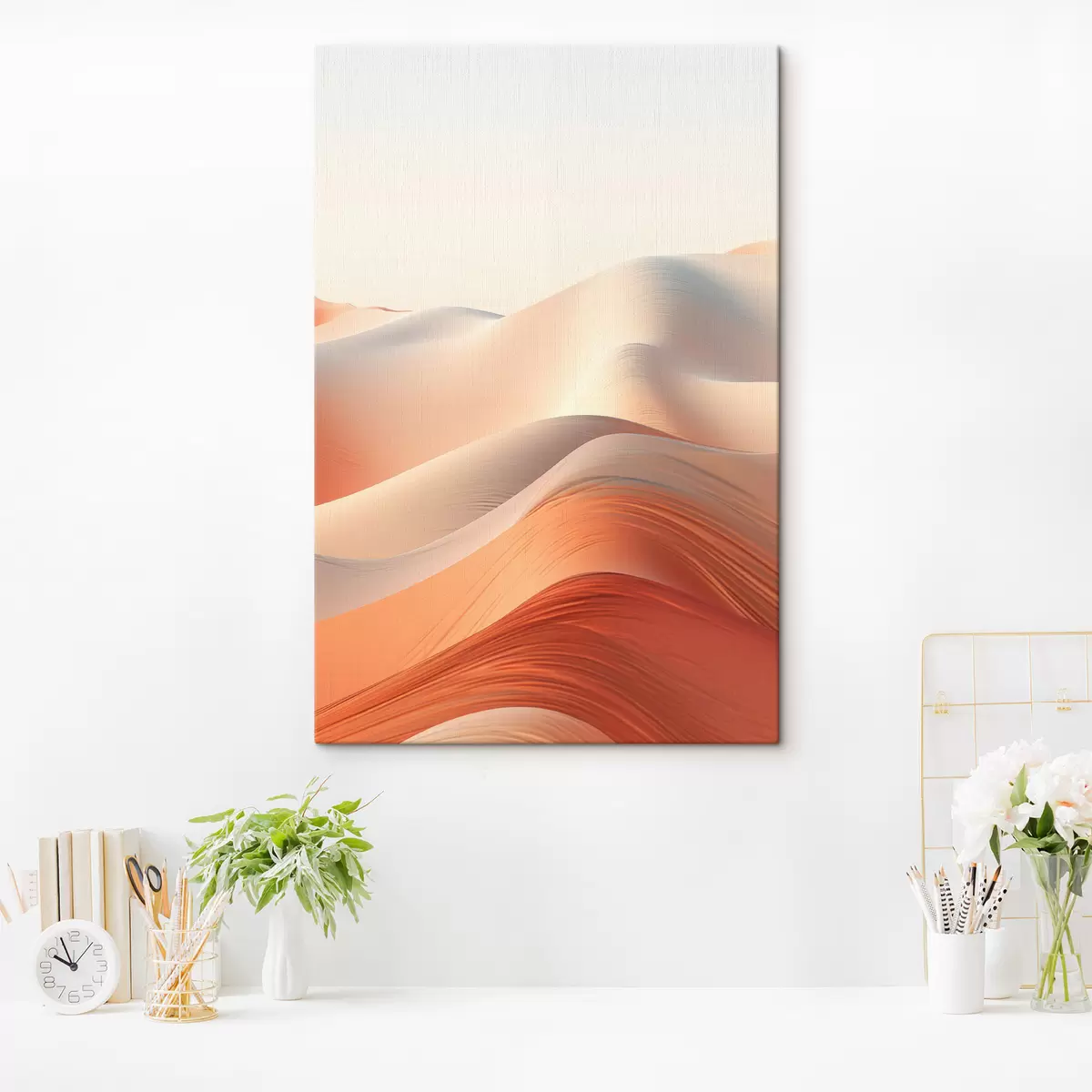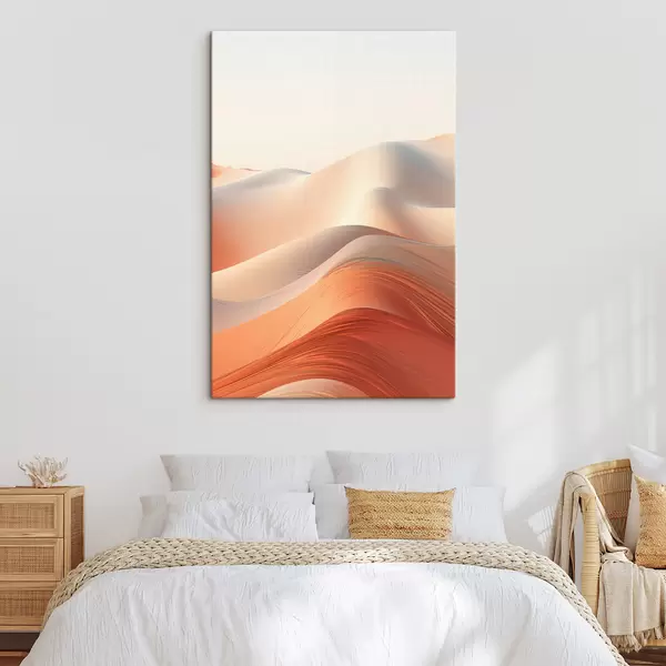 Quadri Paesaggio desertico astratto con dune di sabbia fluenti nei toni caldi dell'arancio e del bianco Nr s47031