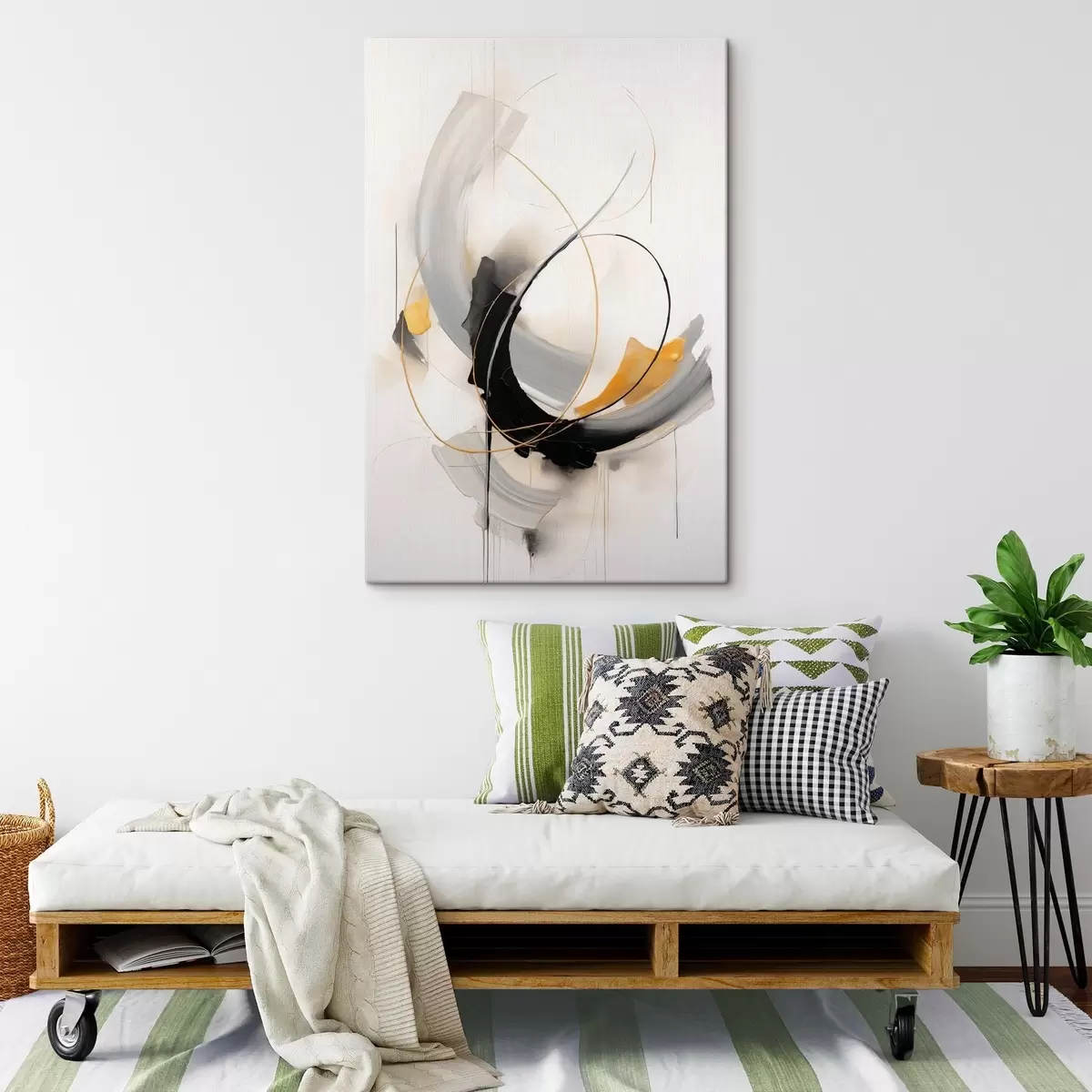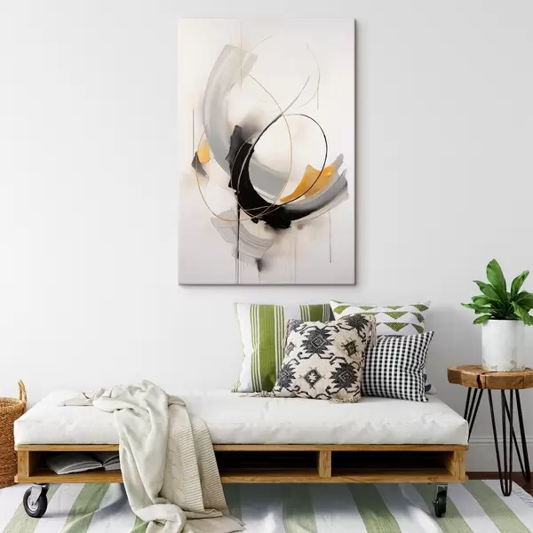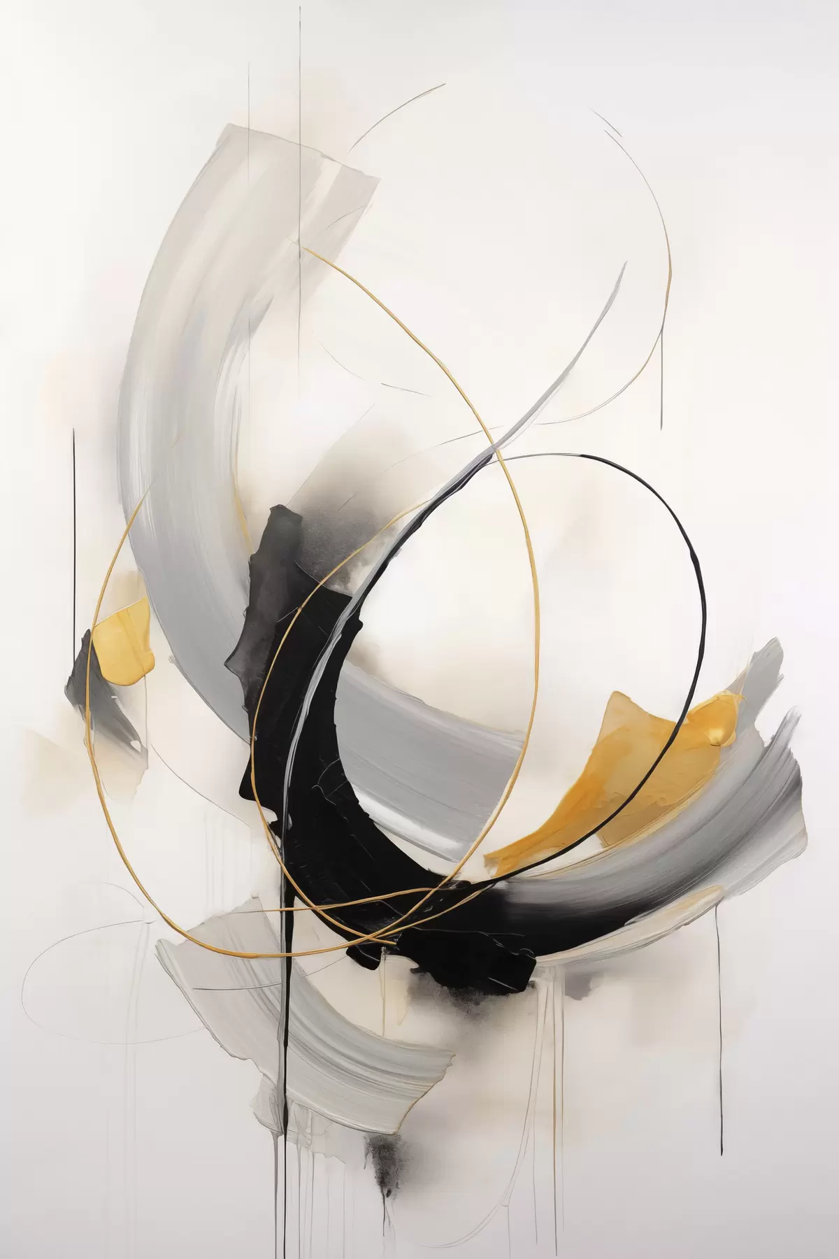 Quadri Pittura astratta con pennellate gialle, nere e bianche, linee dinamiche Nr s47035