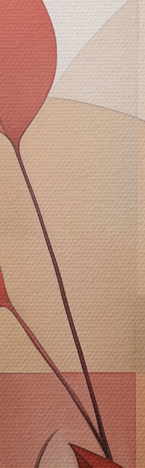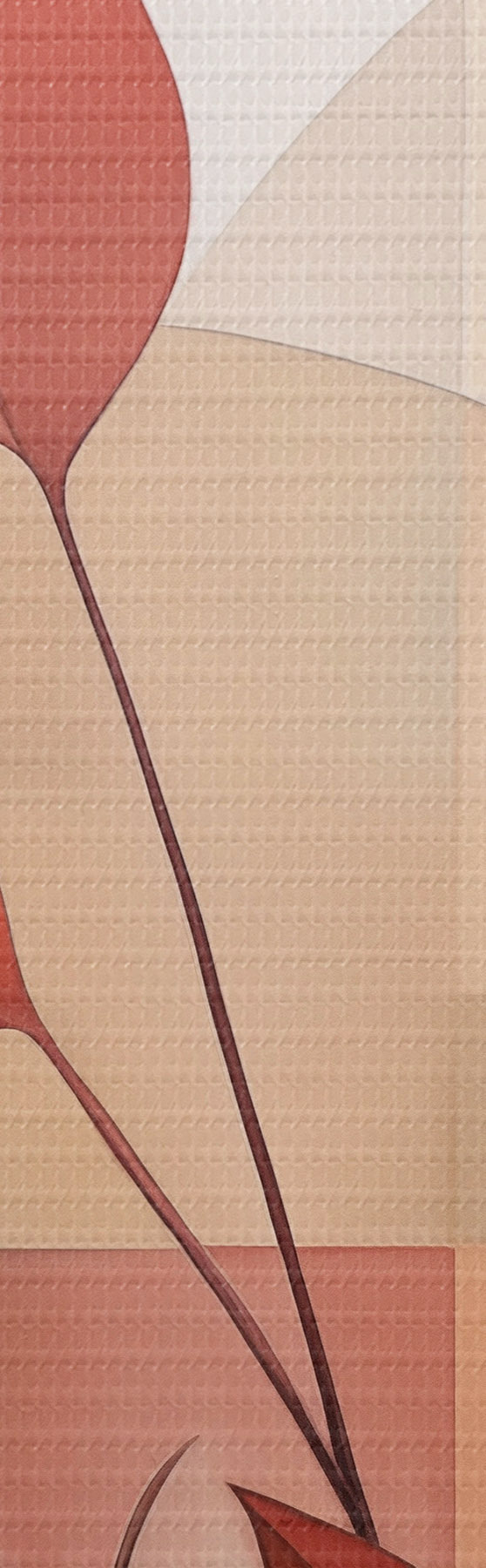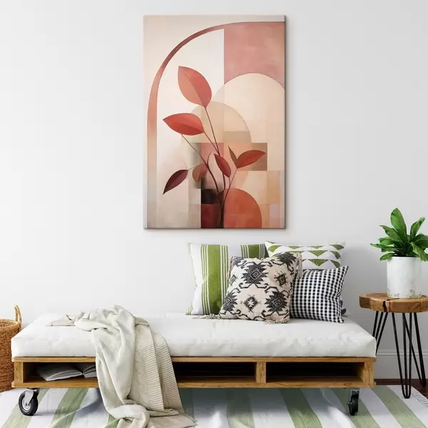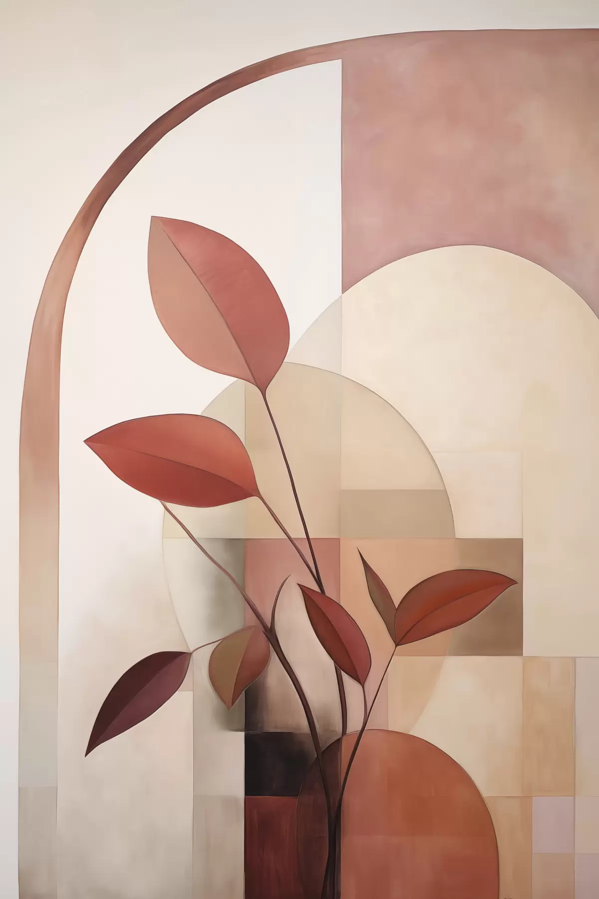 Quadri Pianta astratta con foglie rosse su uno sfondo di forme geometriche e colori tenui e delicati Nr s47040