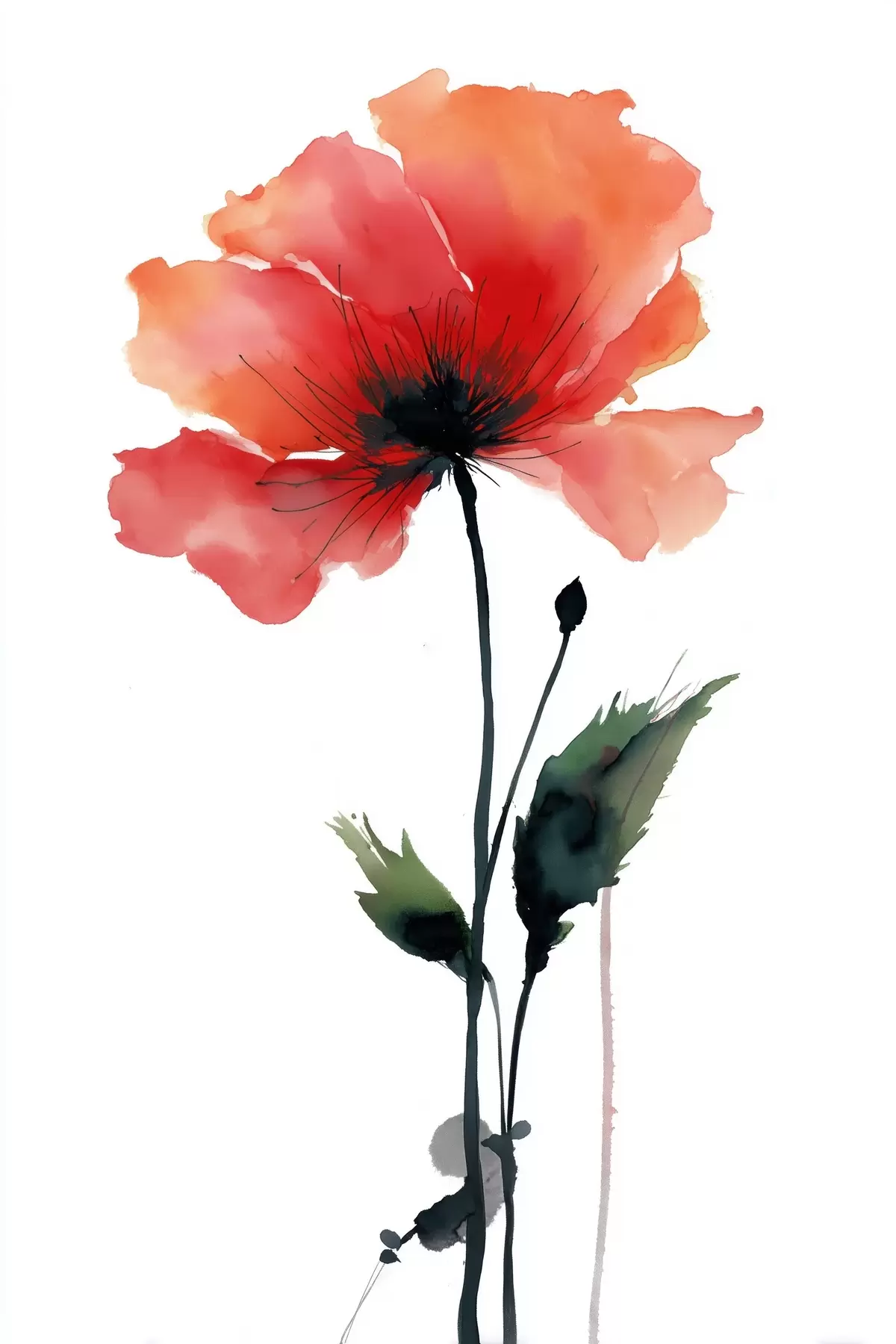 Quadri Papavero acquerellato in una tavolozza tranquilla con morbide transizioni di colore Nr s47087