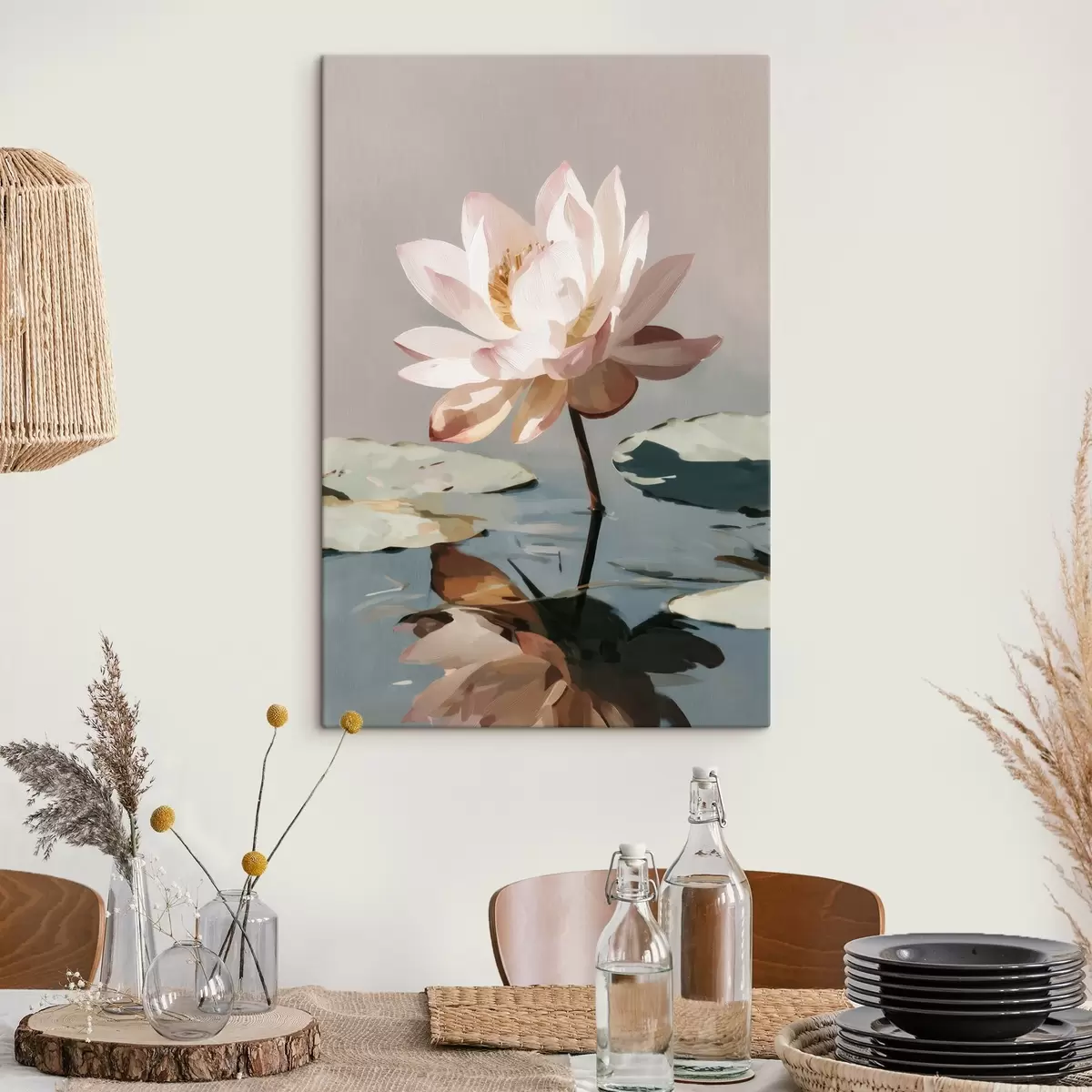 Quadri Loto bianco su sfondo pastello in stile pittura a olio Nr s47093