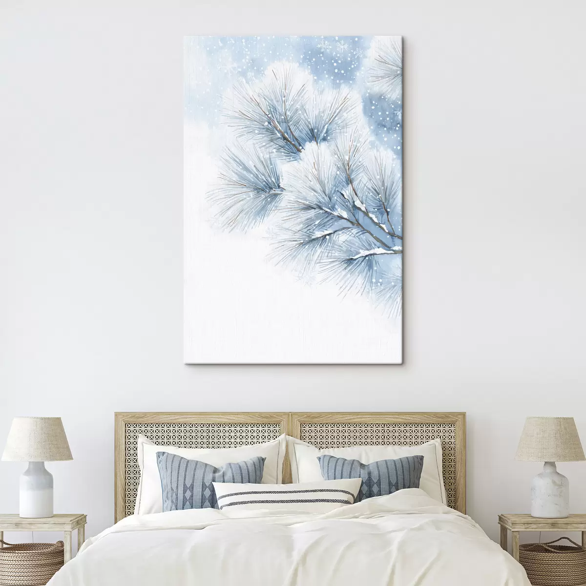 Quadri ramo di pino ricoperto di neve in stile acquerello Nr s47114