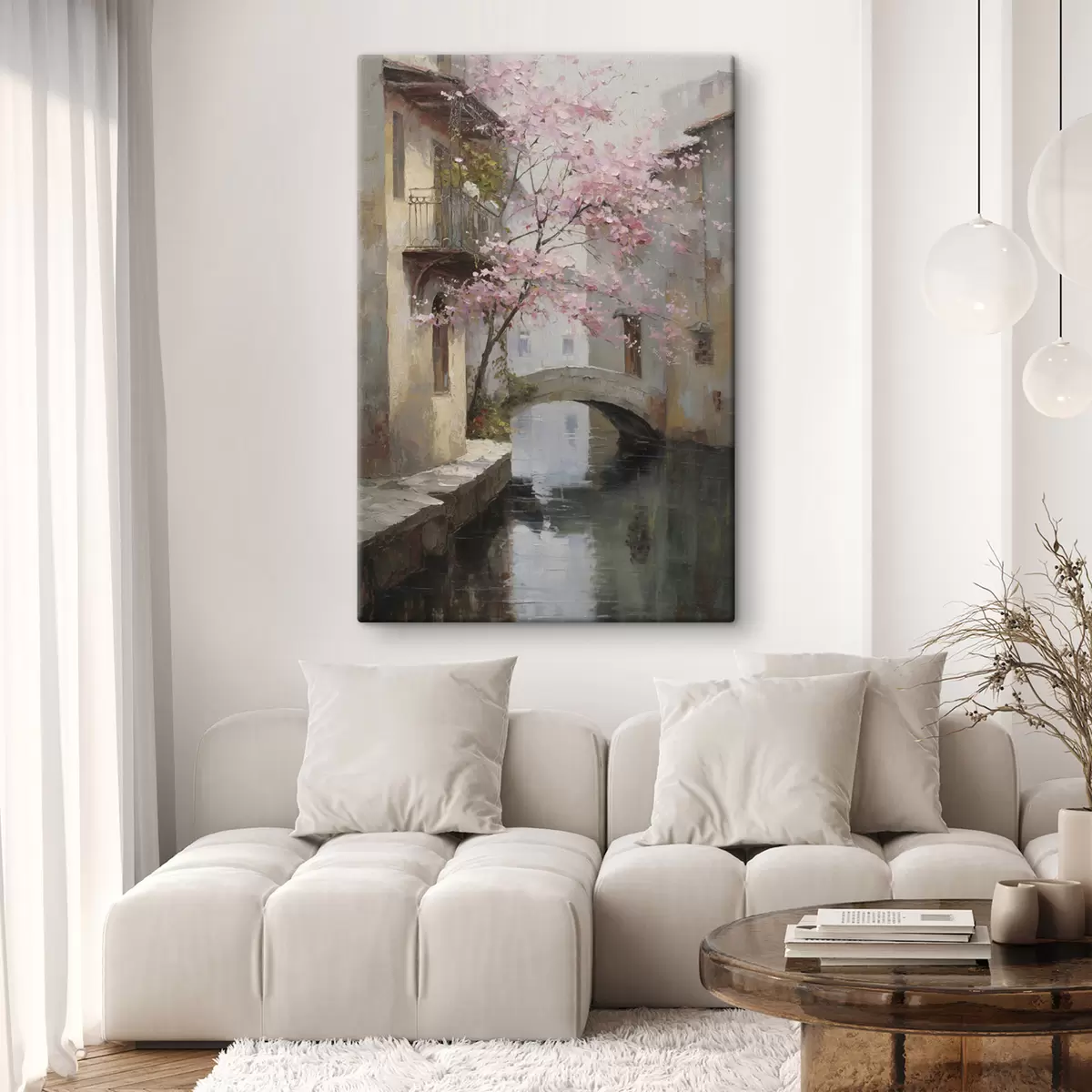 carta da parati romantico paesaggio urbano con un albero in fiore nello stile della pittura a olio nr. s47126