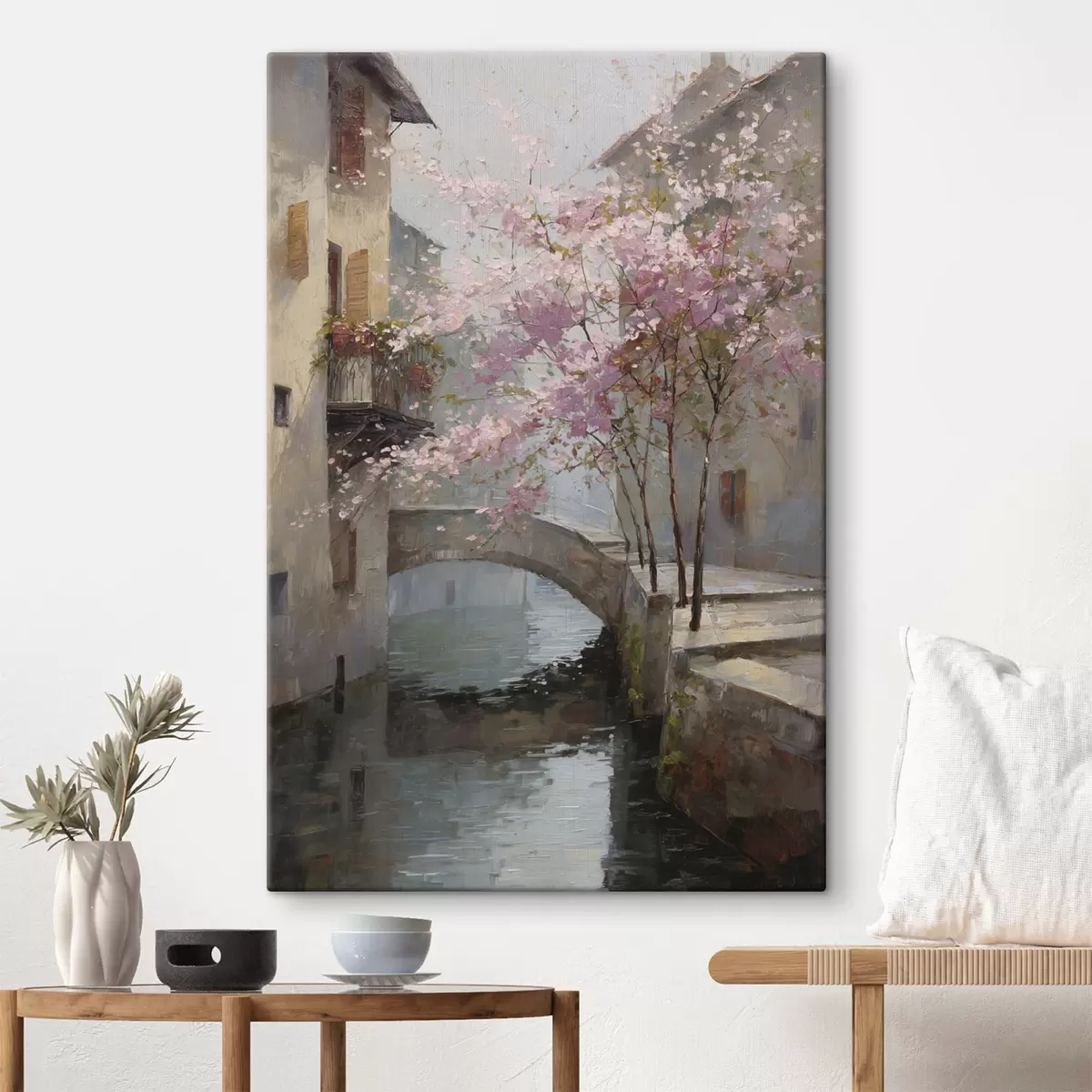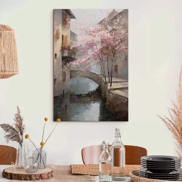 Quadri romantico paesaggio urbano con un albero in fiore nello stile della pittura a olio Nr s47127