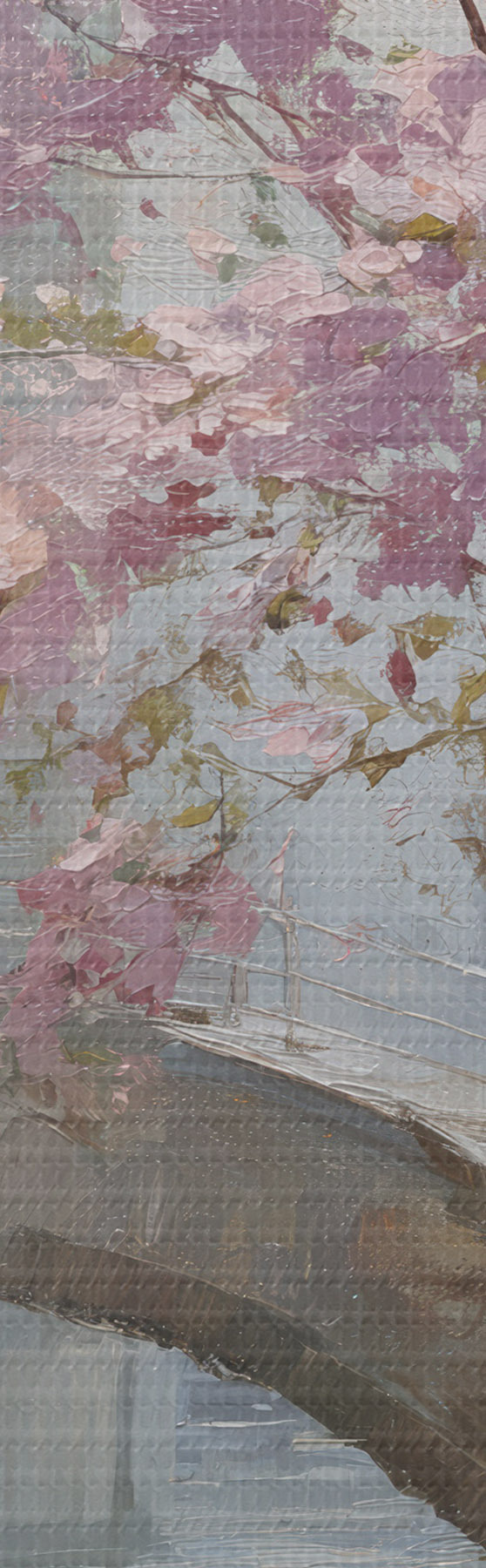 carta da parati romantico paesaggio urbano con un albero in fiore nello stile della pittura a olio nr. s47127