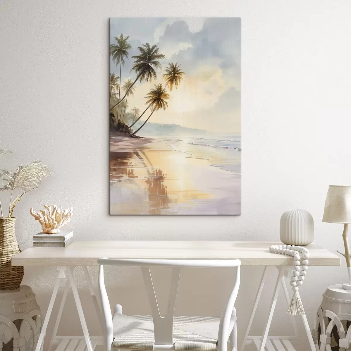 Quadri tramonto sulla spiaggia di un'isola in stile acquerello Nr s47136