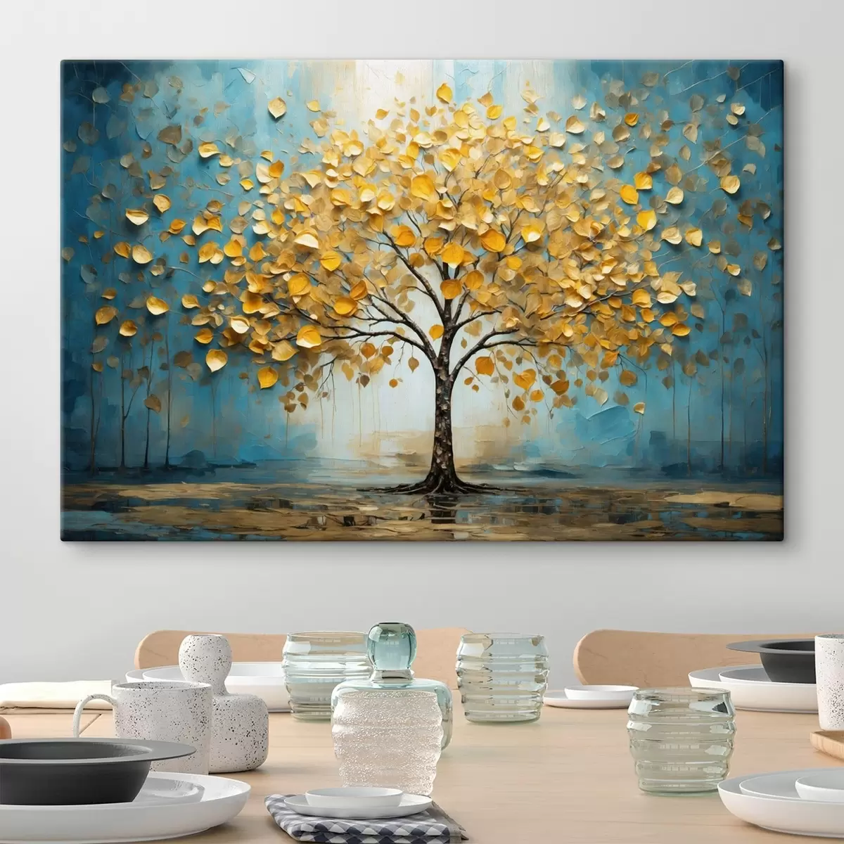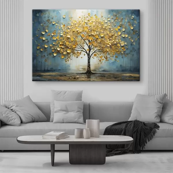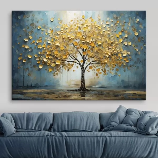 Quadri Albero con foglie gialle su sfondo blu Nr s47256