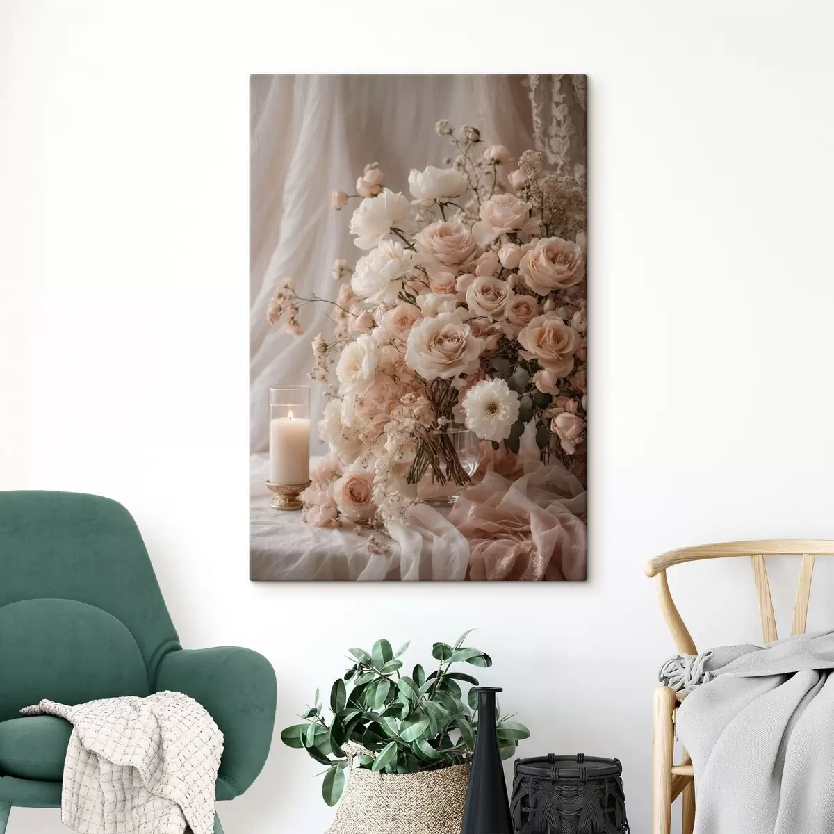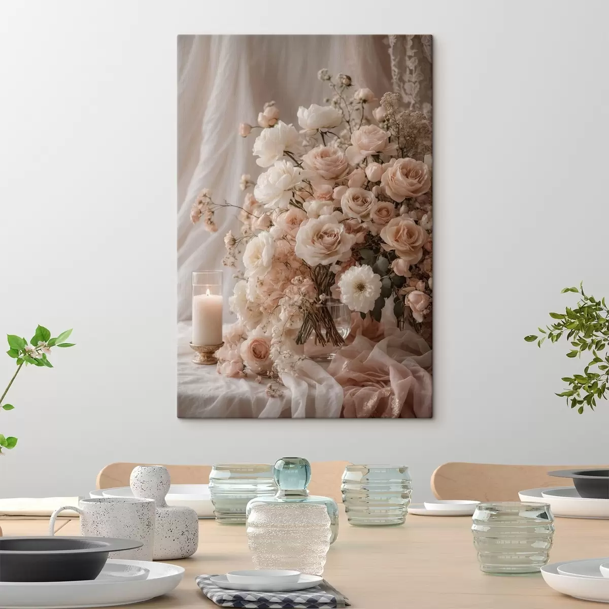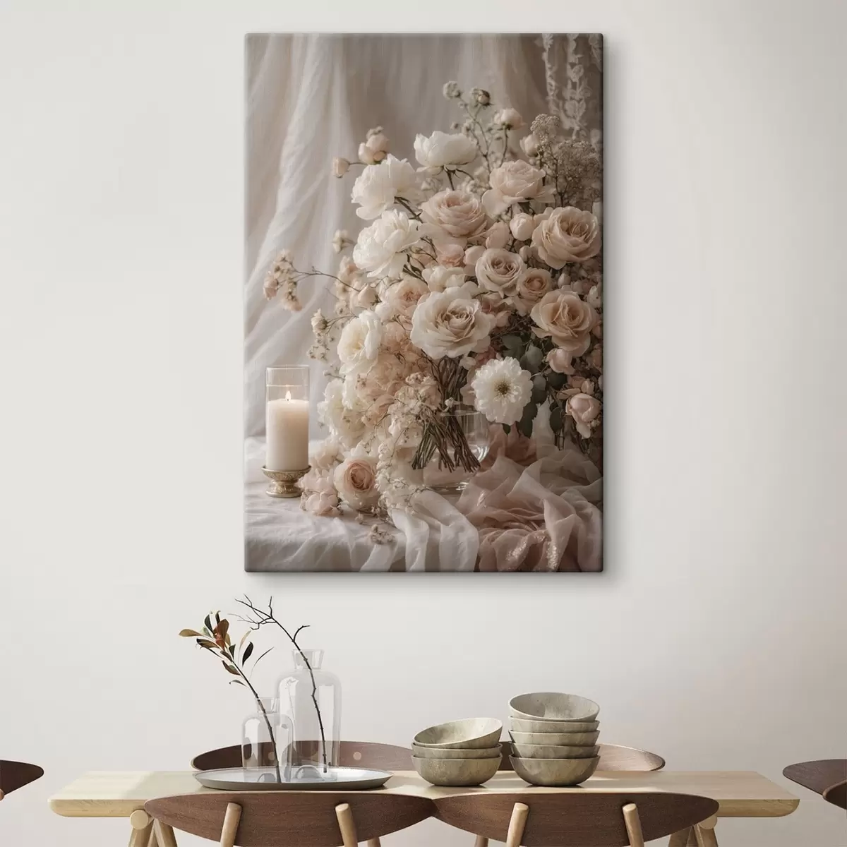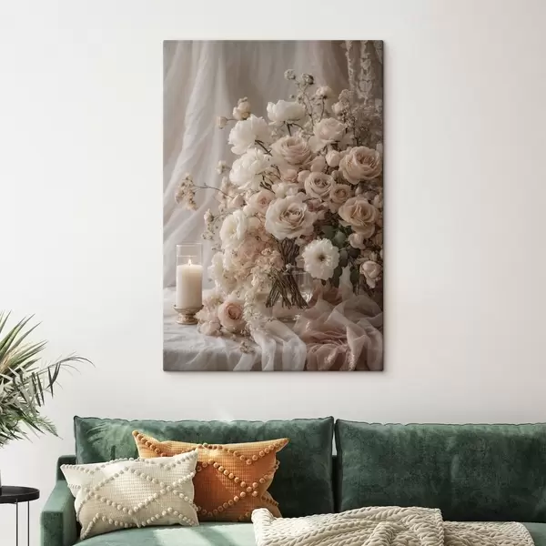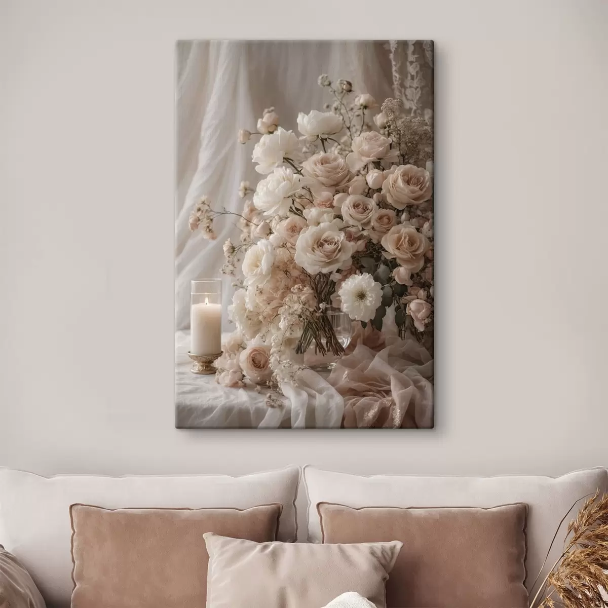 Quadri Fiori color crema accanto a una candela accesa Nr s47281