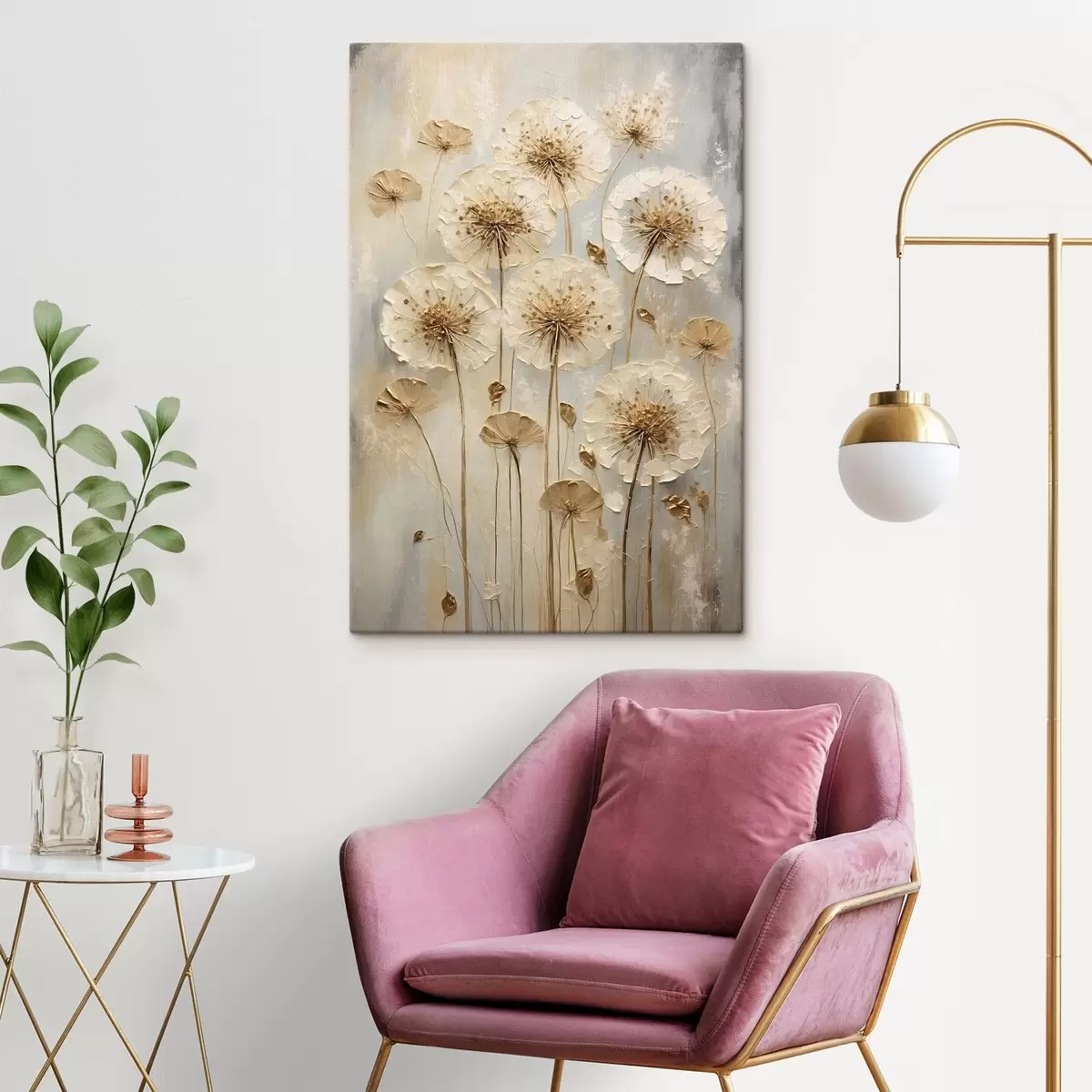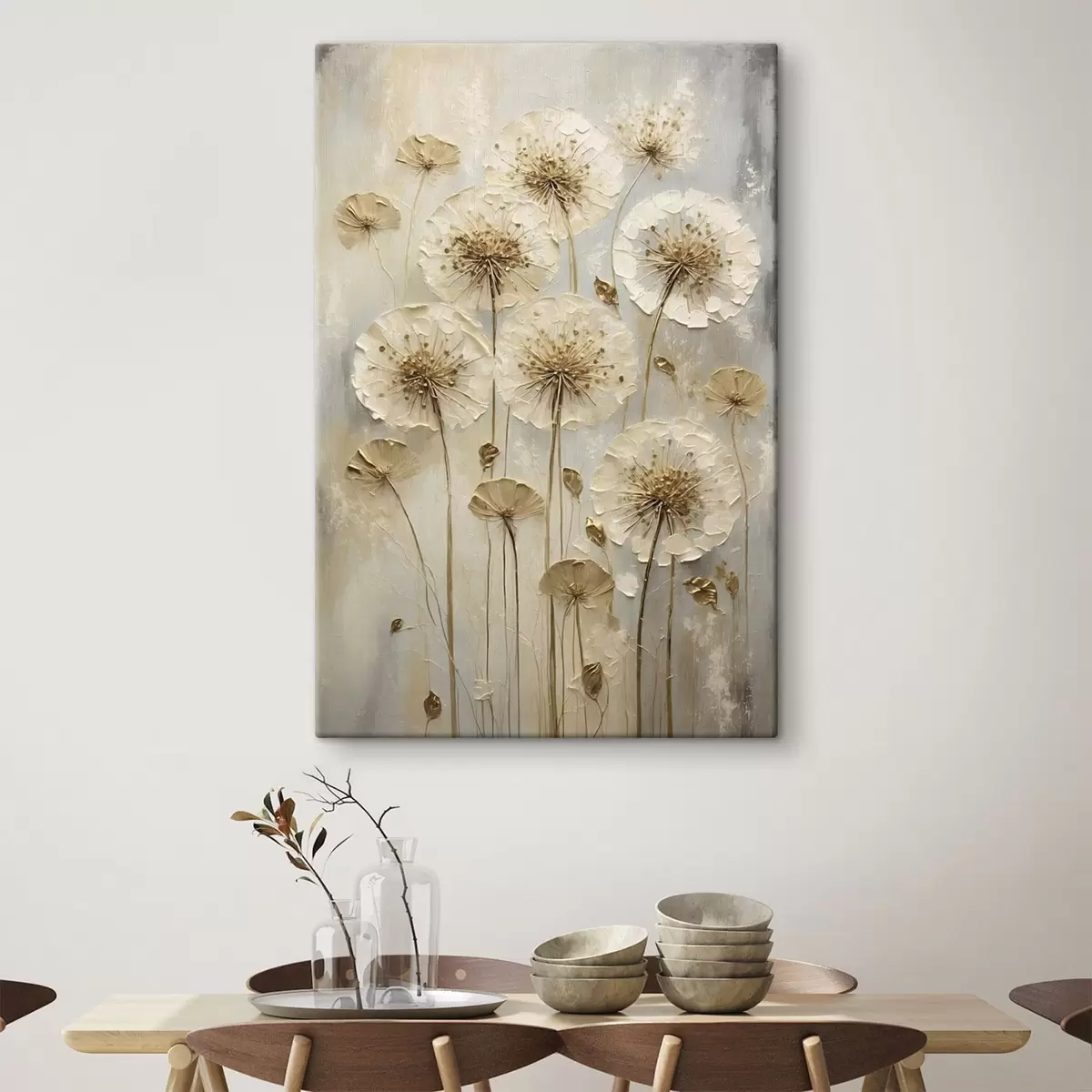 Quadri Fiori alti color crema su sfondo chiaro Nr s47282