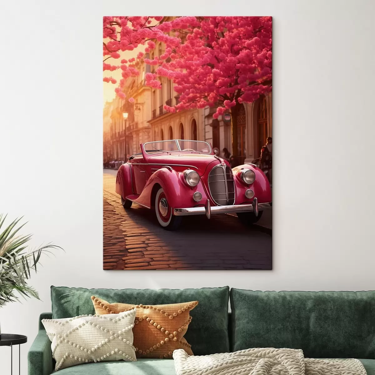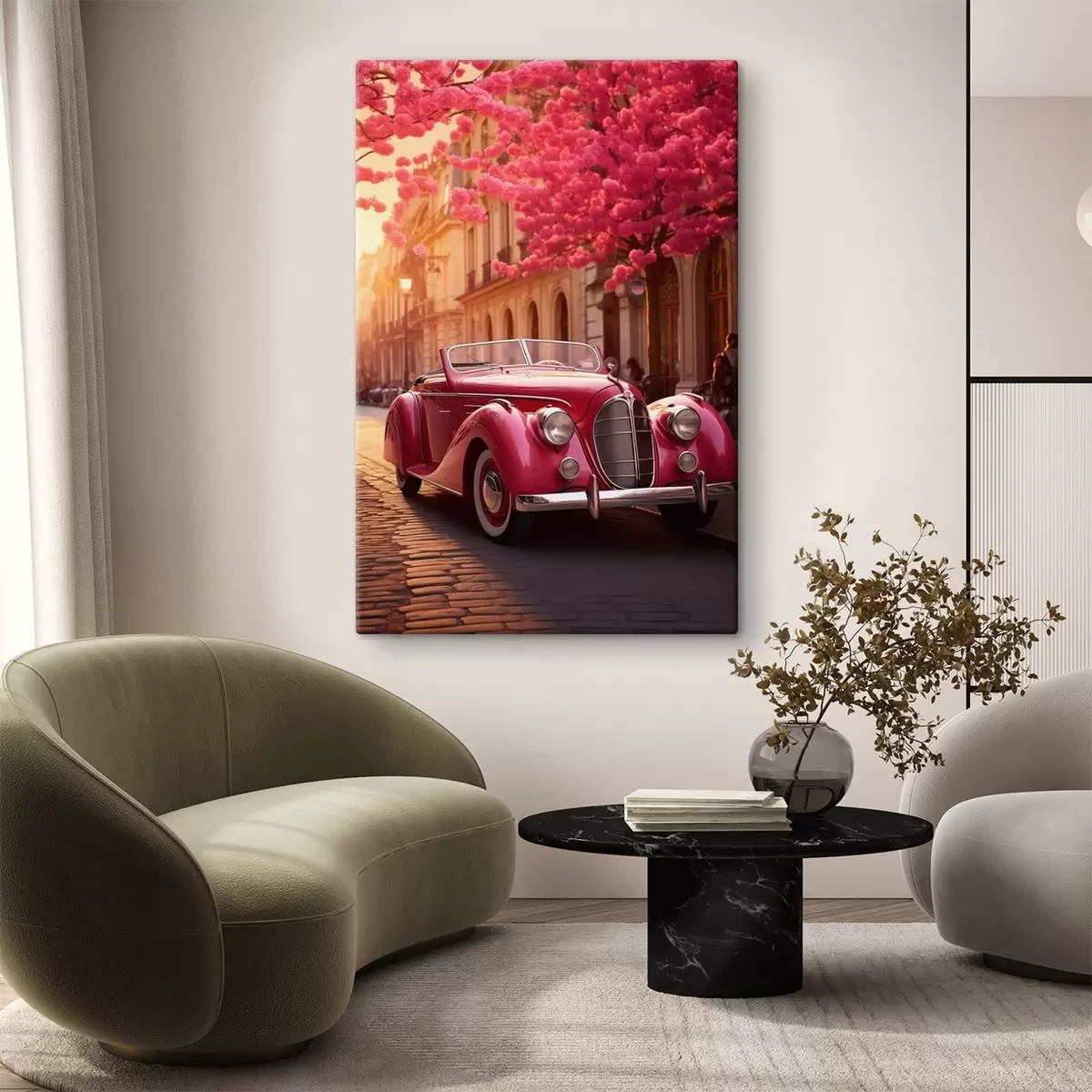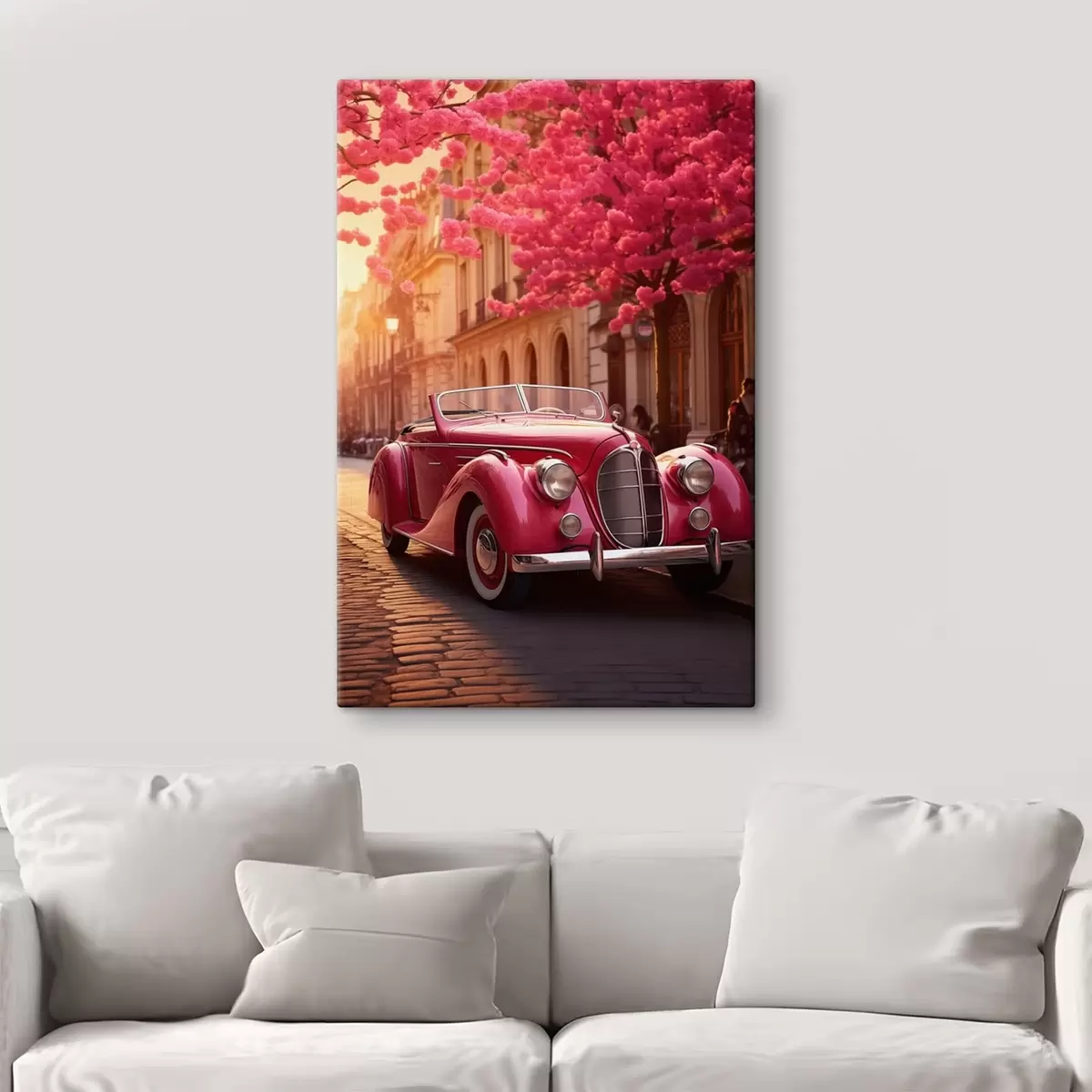 Quadri Auto rosa sotto alberi in fiore Nr s47295