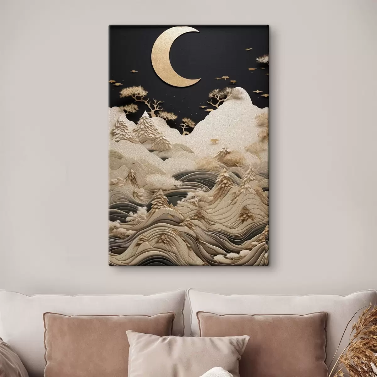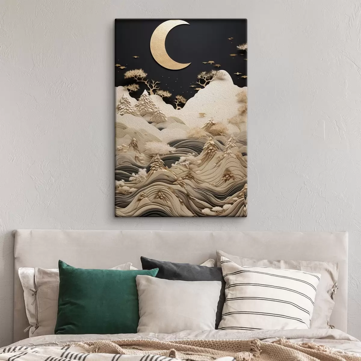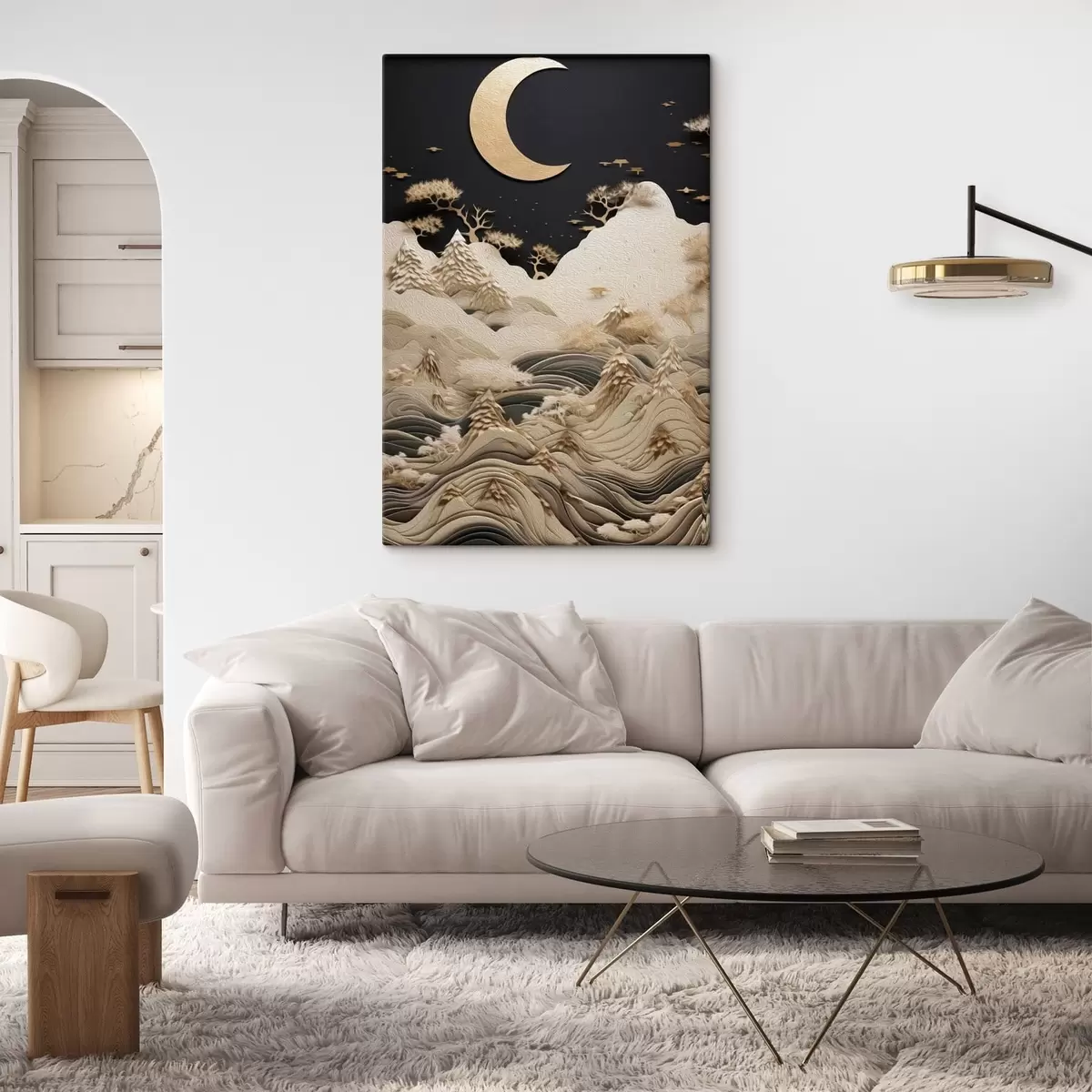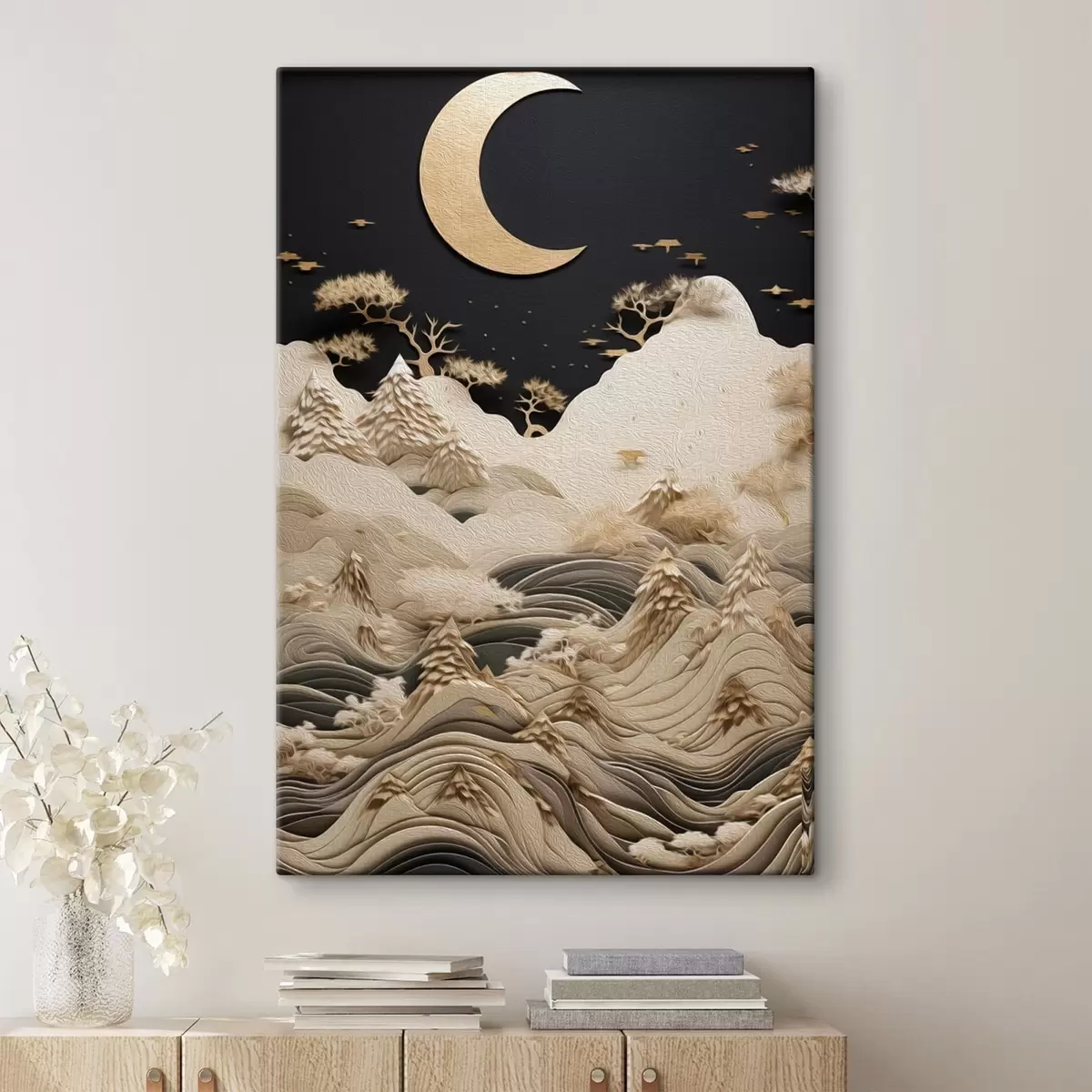 Quadri Montagne e alberi stilizzati sotto la luna Nr s47300