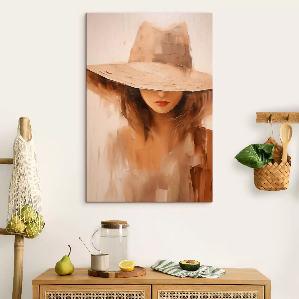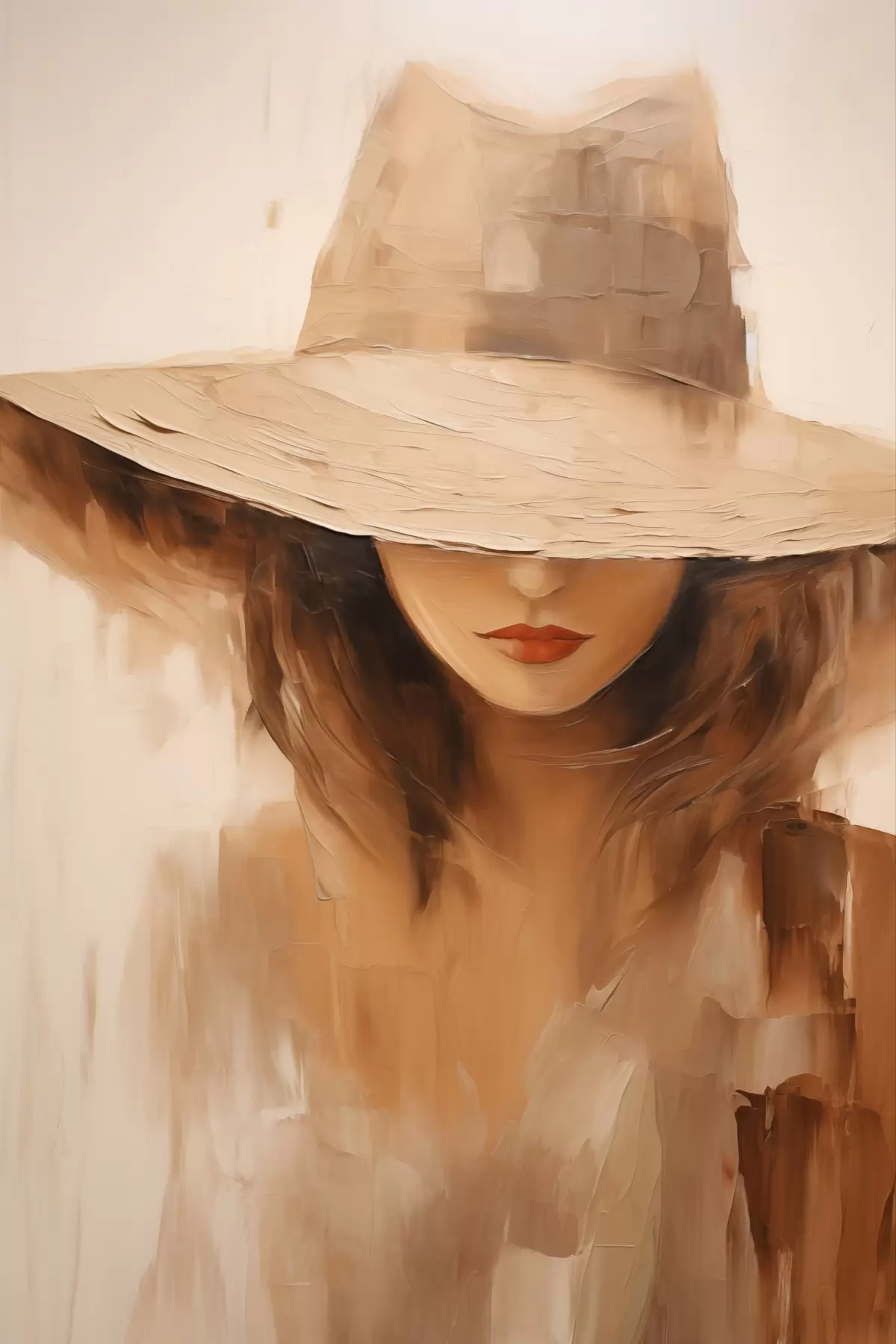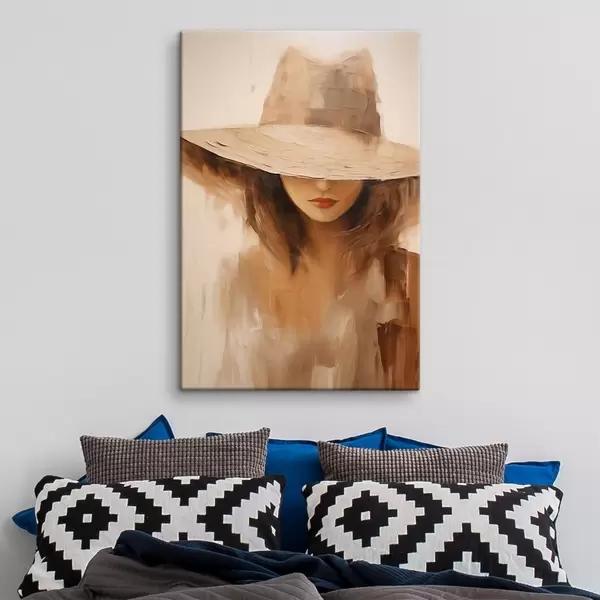 Quadri Donna con cappello in caldi tratti astratti Nr s47312