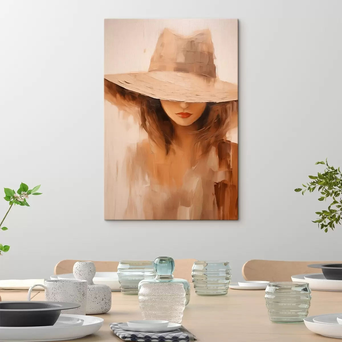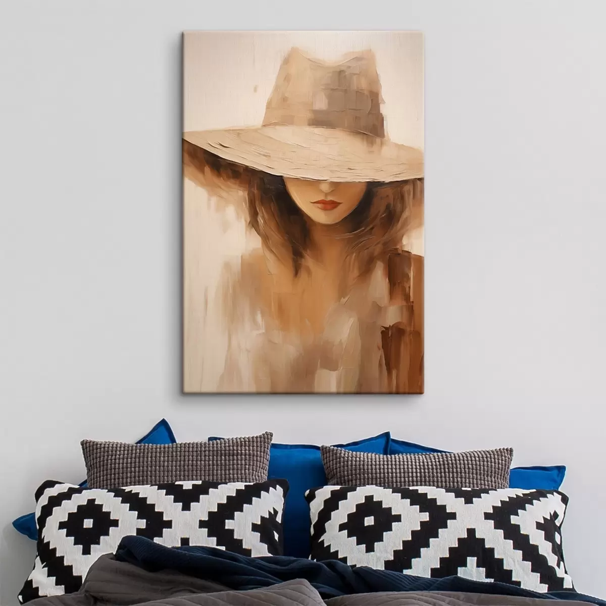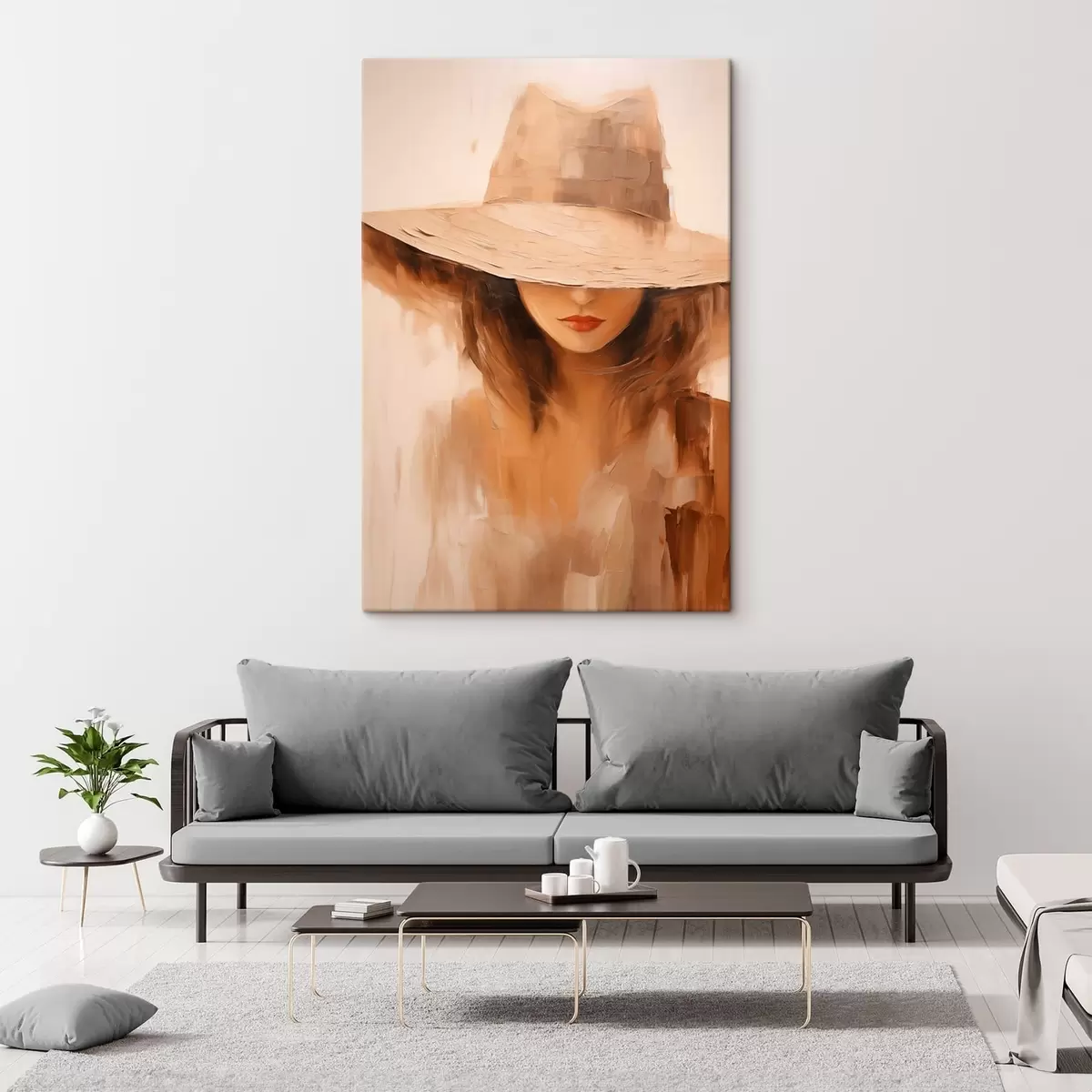 Quadri Donna con cappello in caldi tratti astratti Nr s47312