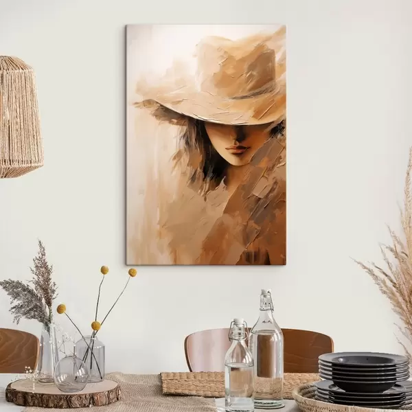 Quadri Donna con cappello dipinta con pennellate calde e materiche Nr s47315