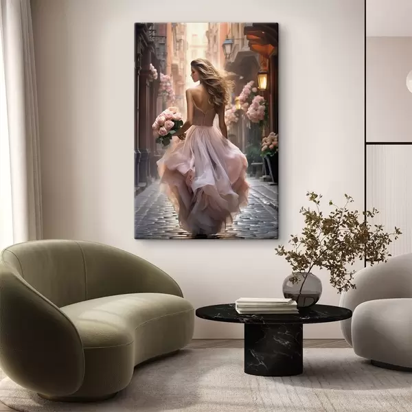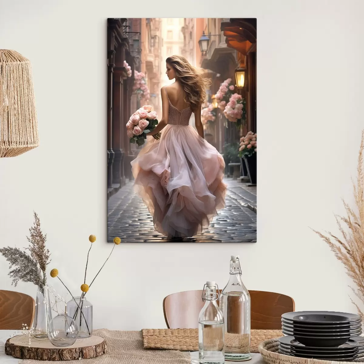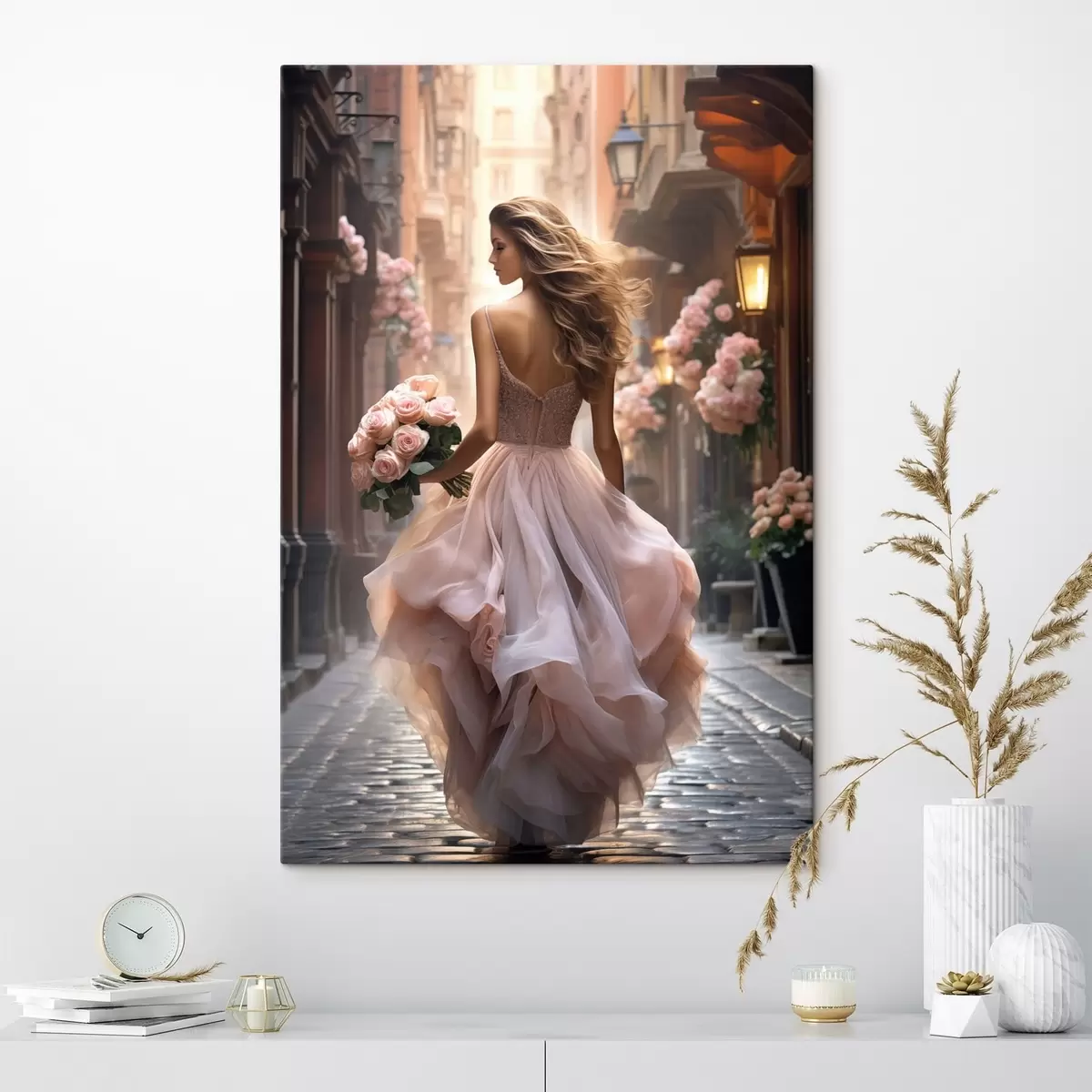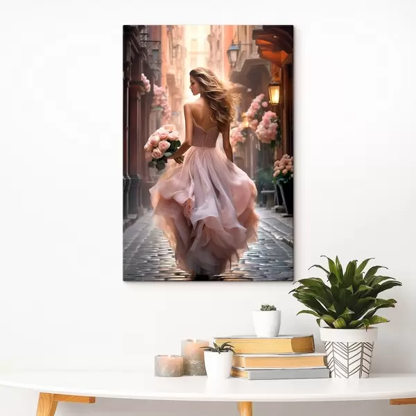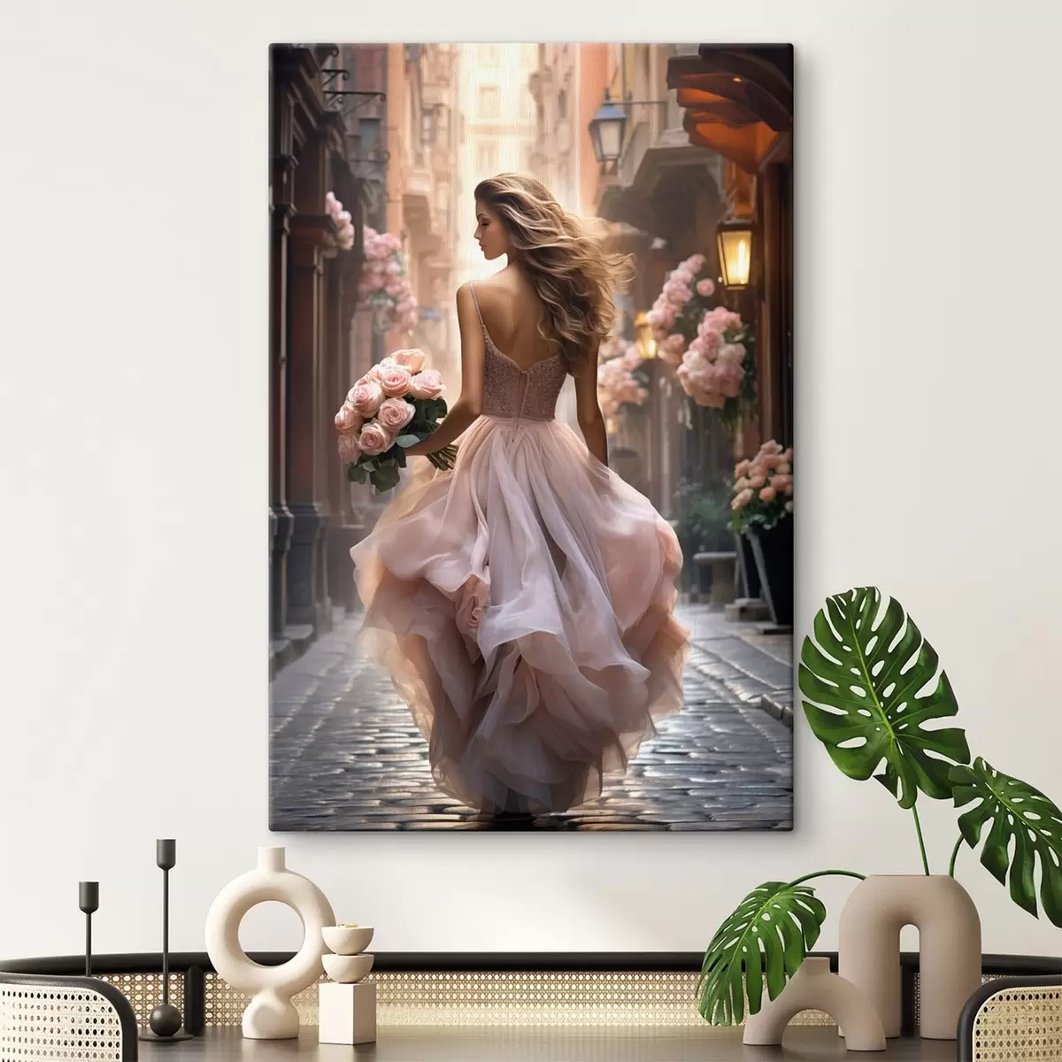 Quadri Donna in abito rosa che cammina per strada Nr s47316