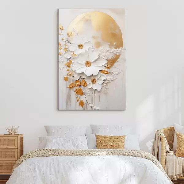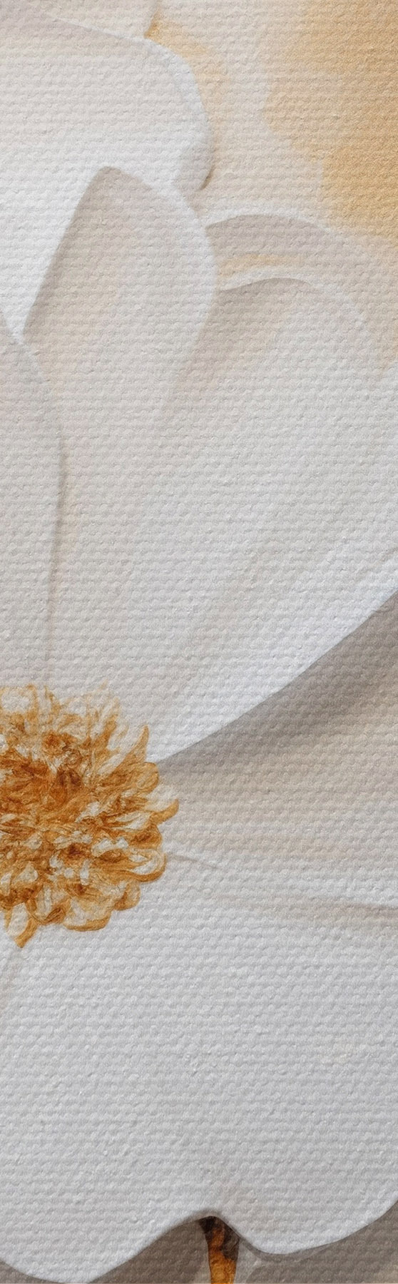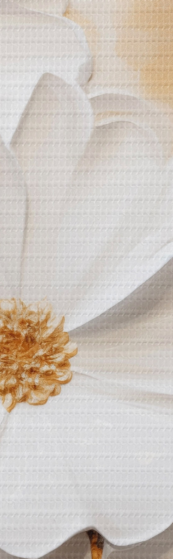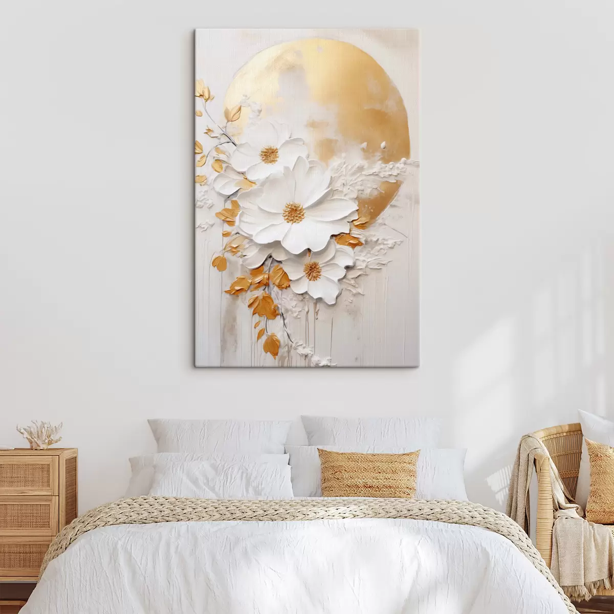 Quadri Fiori bianchi con accenti gialli e foglie delicate su uno sfondo strutturato, arte moderna Nr s47414