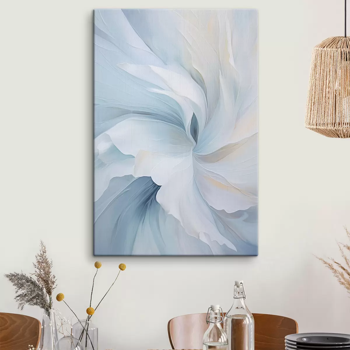 Quadri Petali astratti delicati e traslucidi che volteggiano verso l'interno con luci soffuse e una texture pittorica. Nr s47437