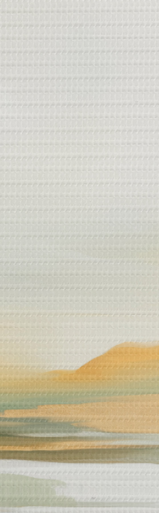 carta da parati Paesaggio astratto con tonalità gialle e verdi, acqua che riflette il cielo e le montagne lontane, cielo pallido e nebbioso nr. s47439