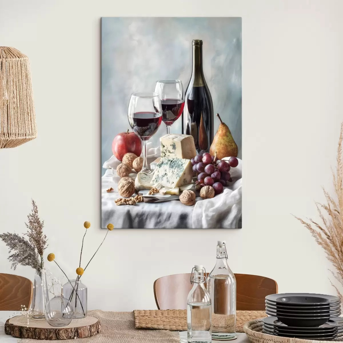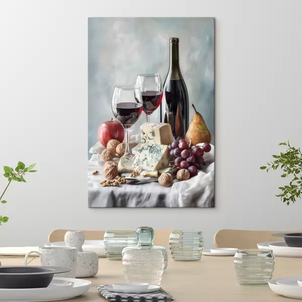Quadri natura morta con vino, formaggio e noci Nr s47686