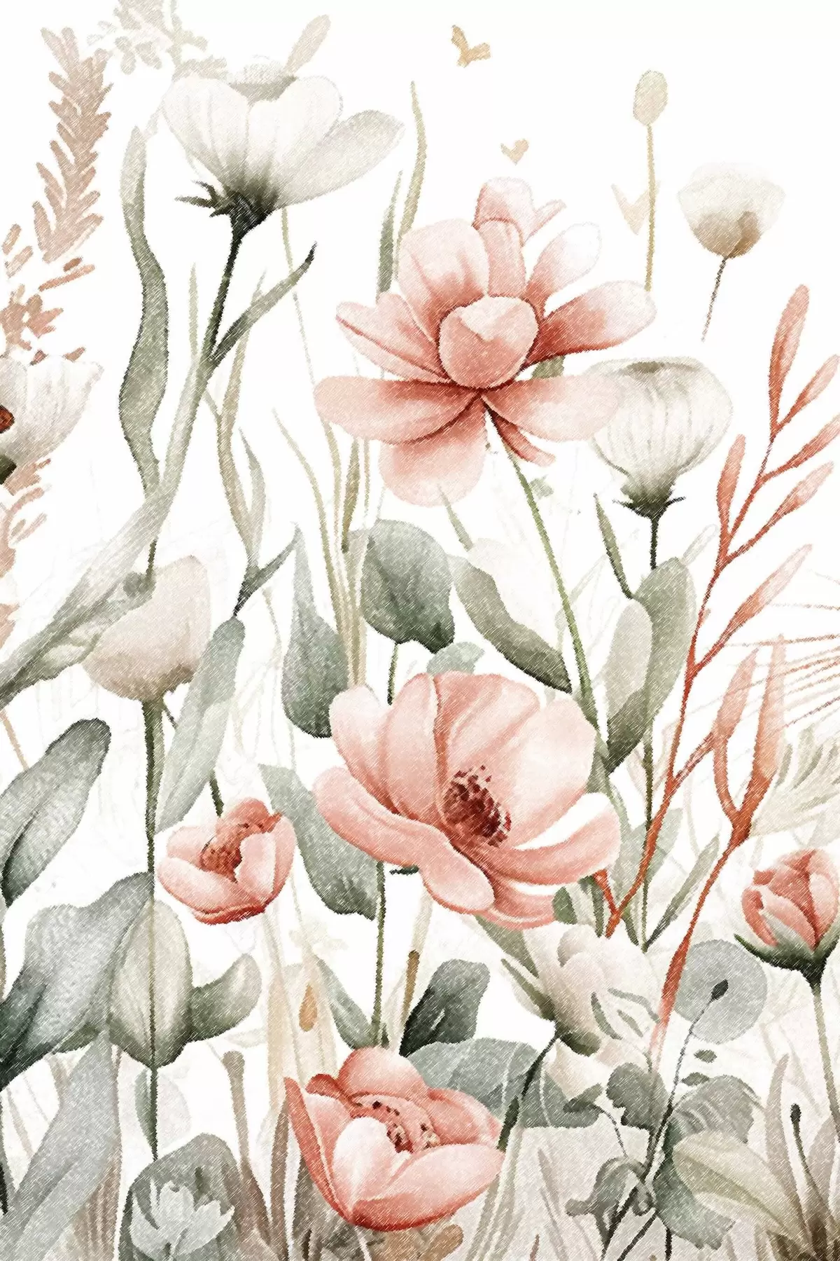 carta da parati Fiori acquerellati, effetto matita nr. s47740
