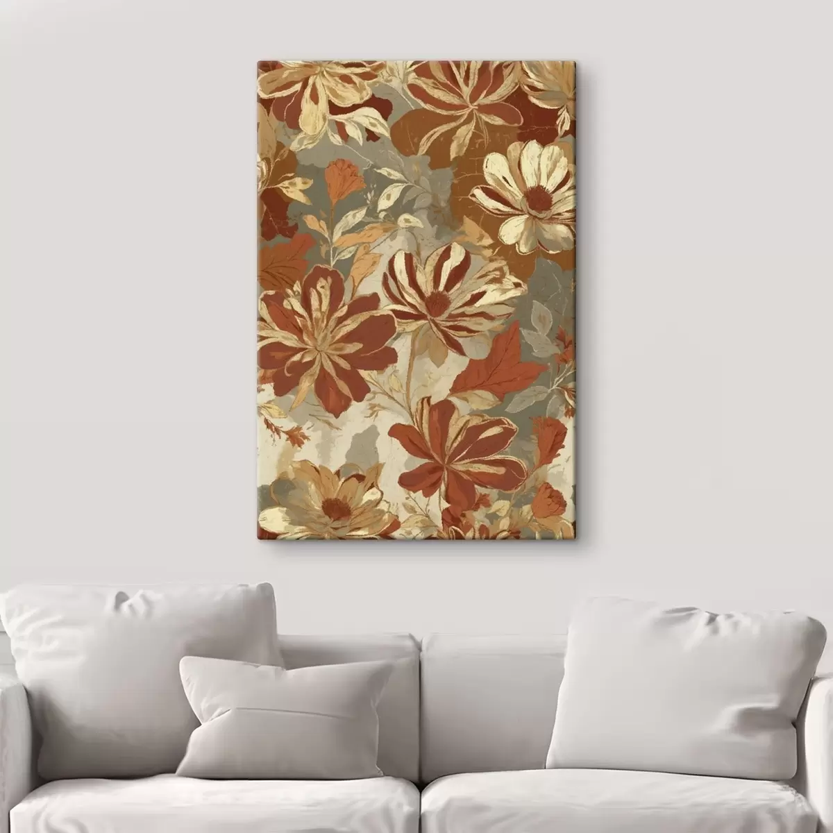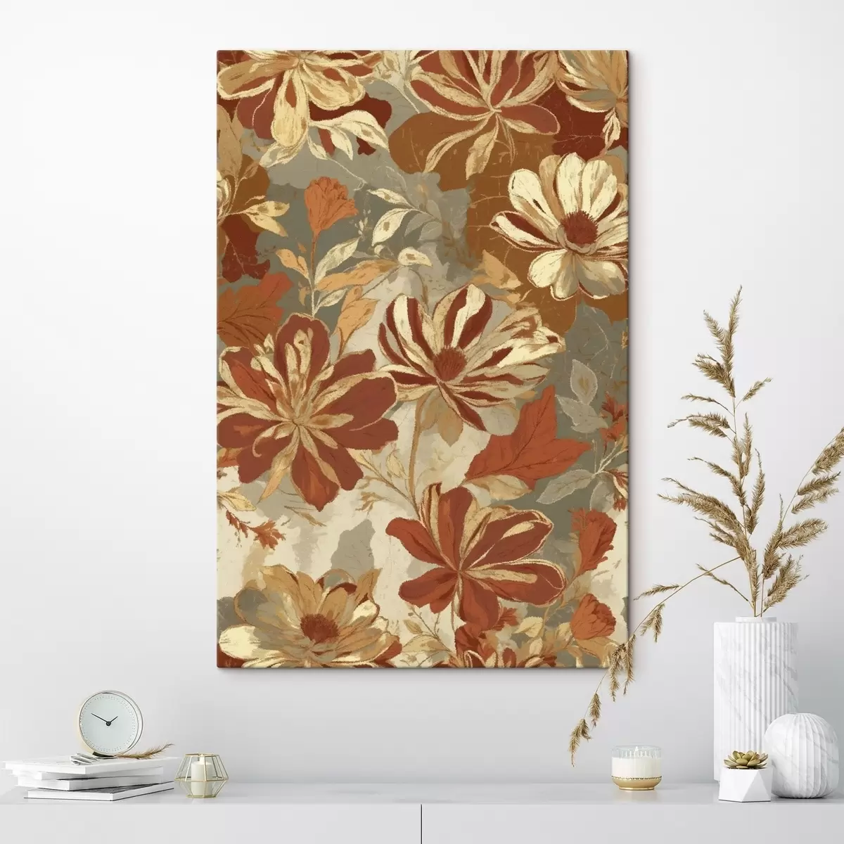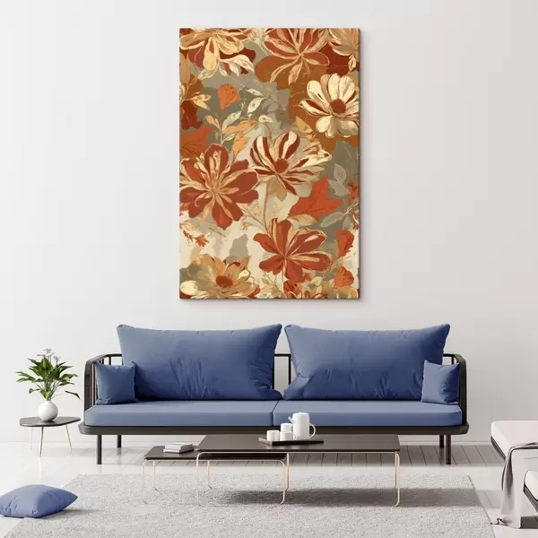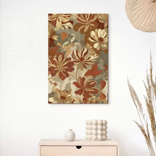 Quadri Motivo floreale nei toni caldi del ruggine e del crema Nr s47770