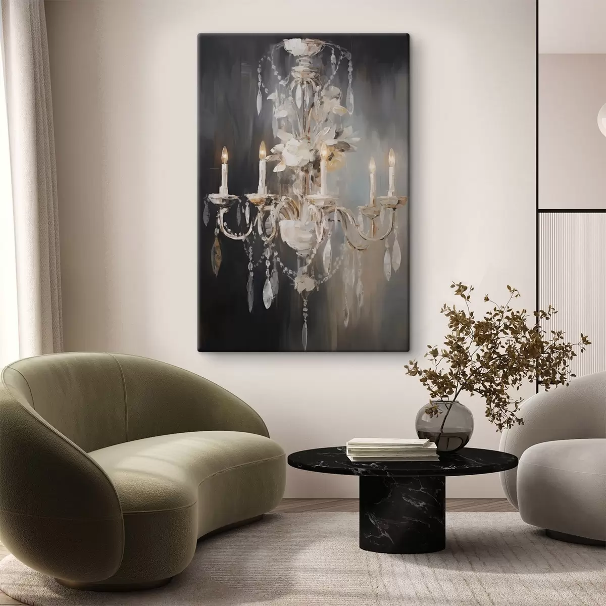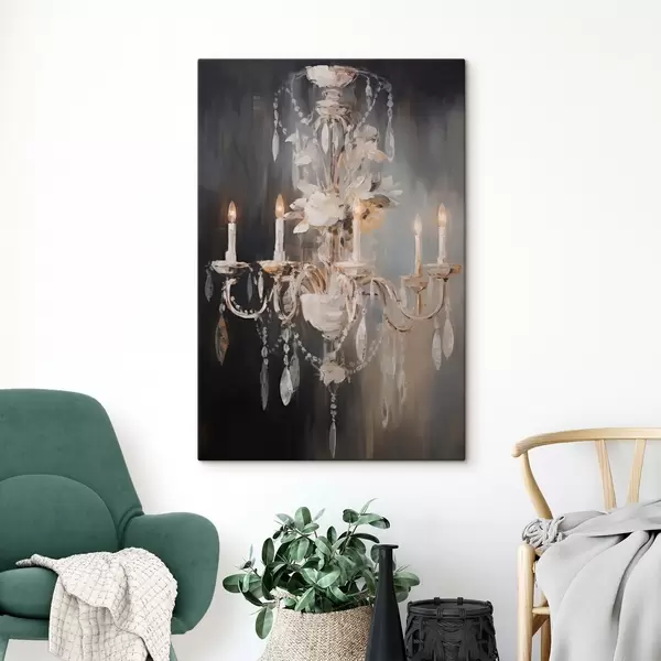 Quadri Lampadario astratto decorato con candele accese e motivi floreali, su uno sfondo scuro e strutturato. Nr s47857