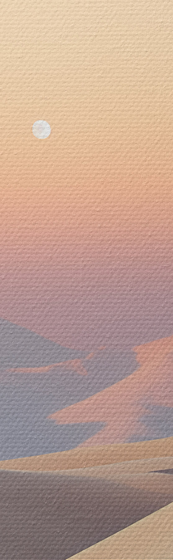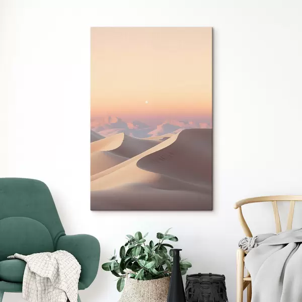 Quadri Un paesaggio desertico con dune di sabbia ondulate sotto un cielo dai colori tenui, montagne lontane sullo sfondo Nr s47865