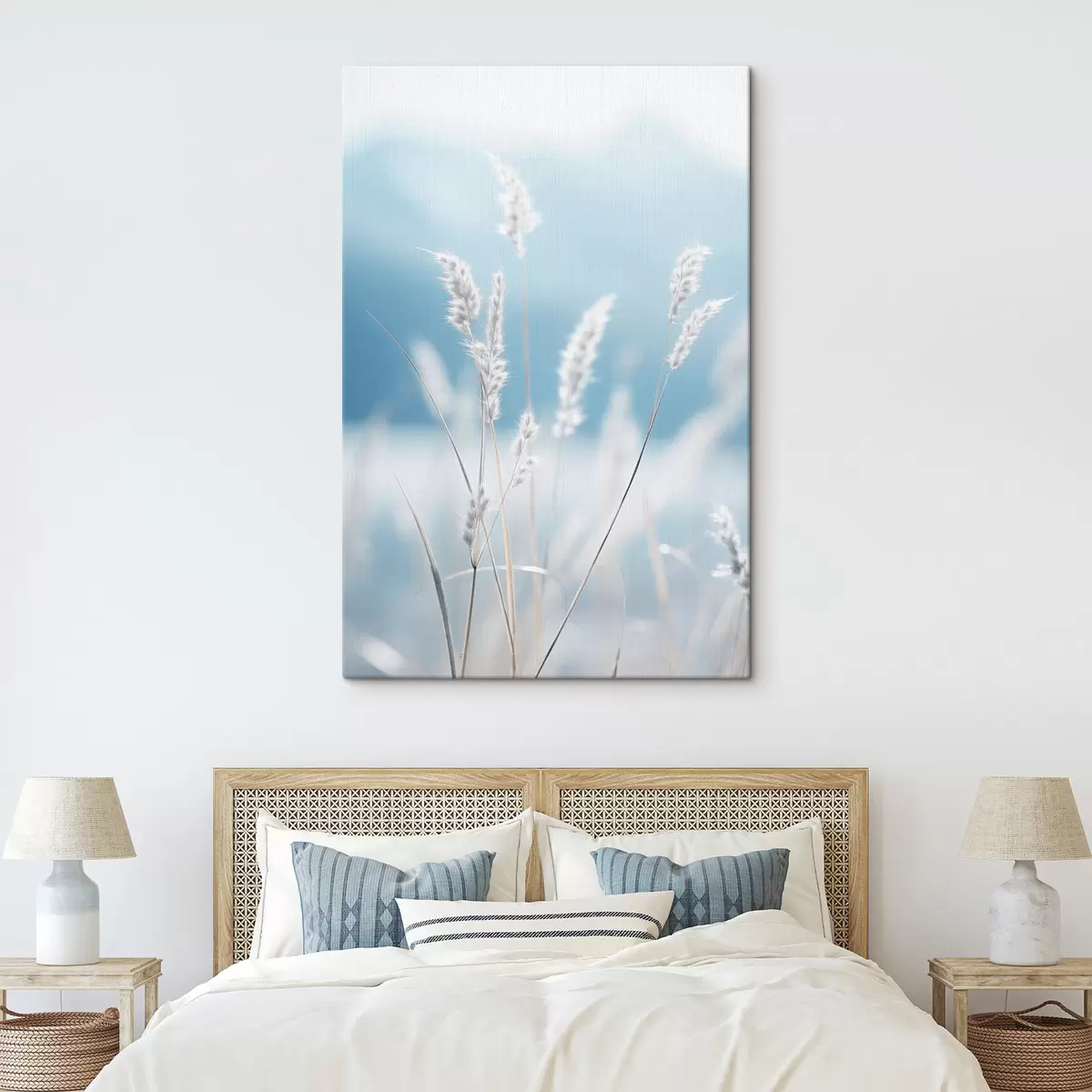 Quadri Erba bianca e soffice su uno sfondo di cielo azzurro, con una profondità di campo ridotta. Nr s47880