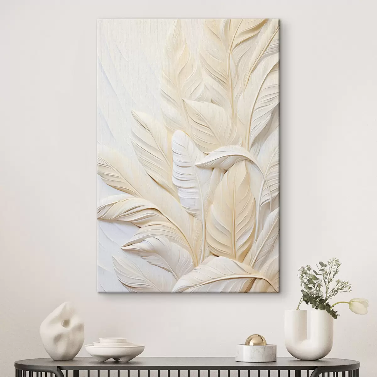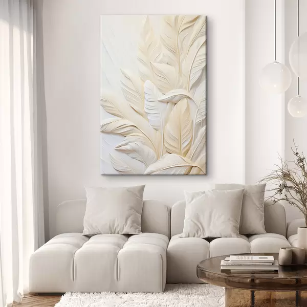 Quadri Piume color crema sovrapposte l'una all'altra, con uno sfondo morbido e chiaro Nr s47883