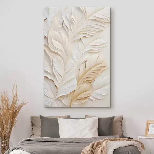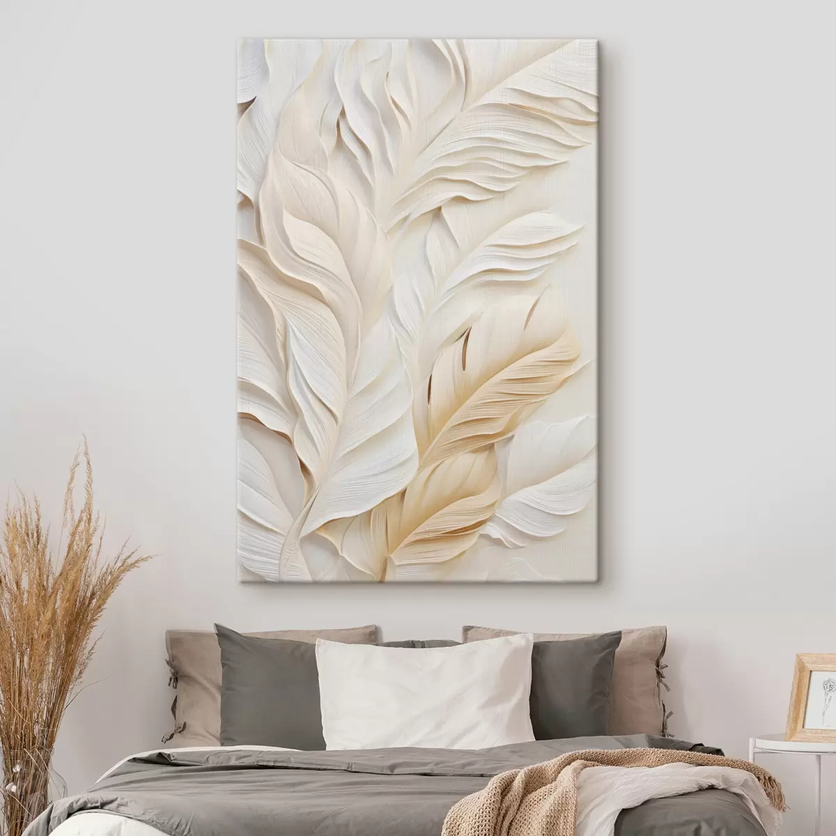 Quadri Piume color crema sovrapposte l'una all'altra, con uno sfondo morbido e chiaro Nr s47884