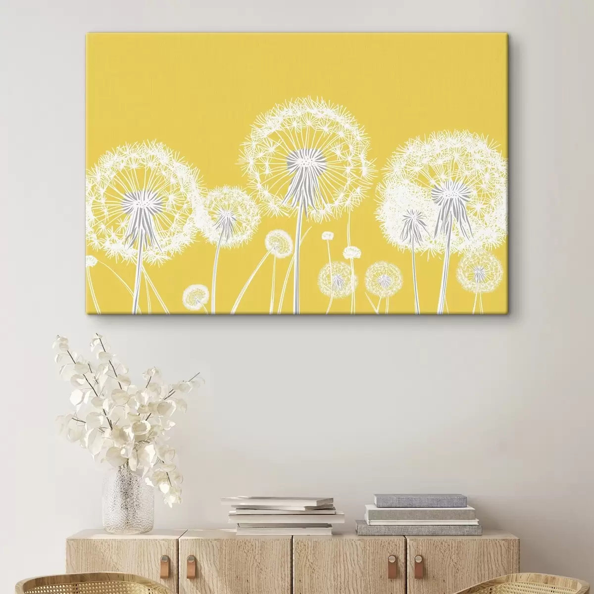 Quadri Denti di leone bianchi su sfondo giallo Nr s47890