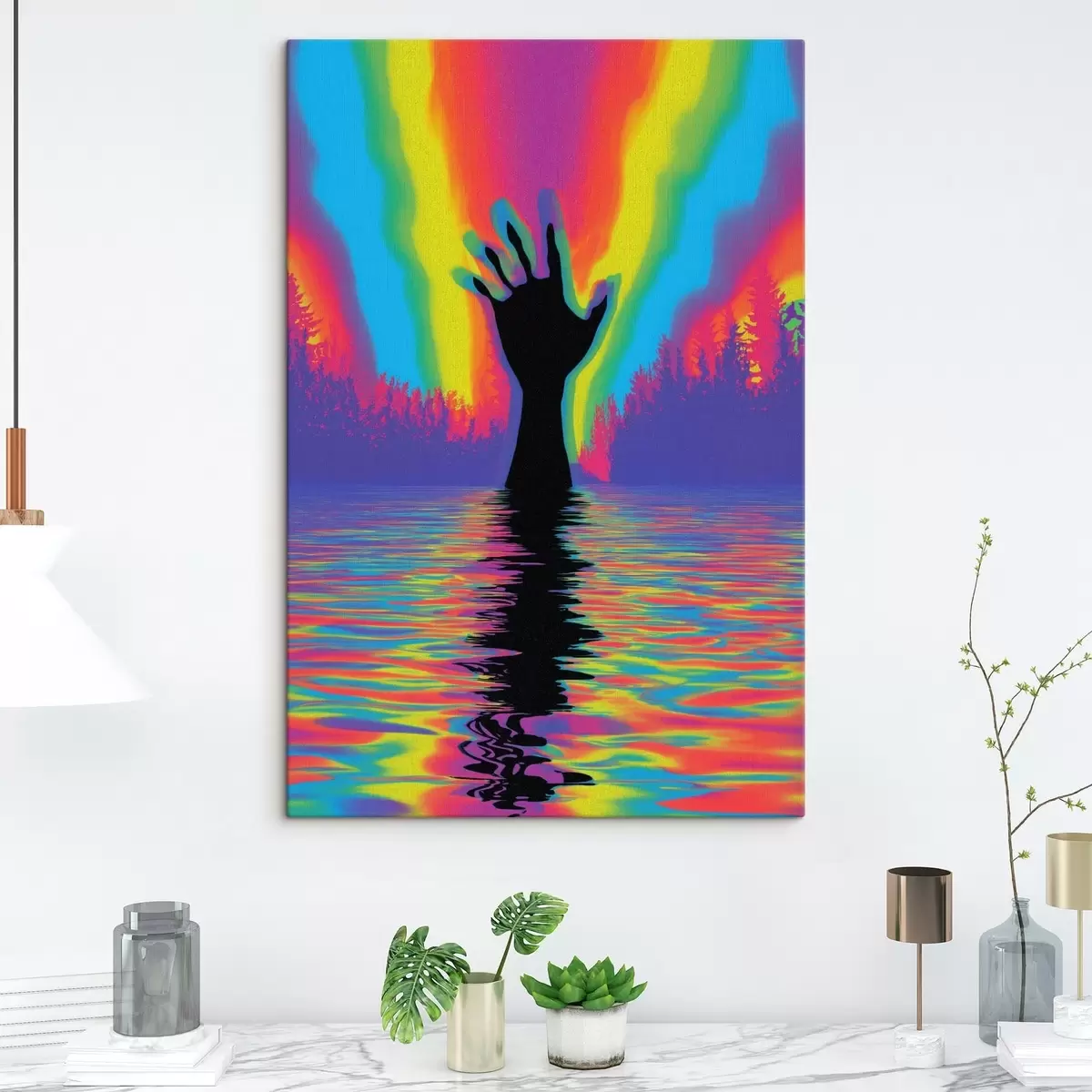 Quadri Sagoma di una mano sopra l'acqua Nr s47903