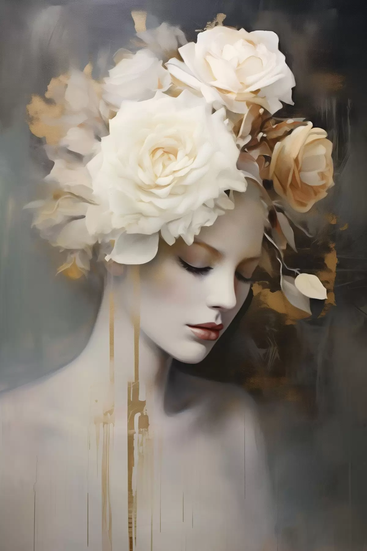 Quadri Ritratto femminile con fiori bianchi Nr s47904