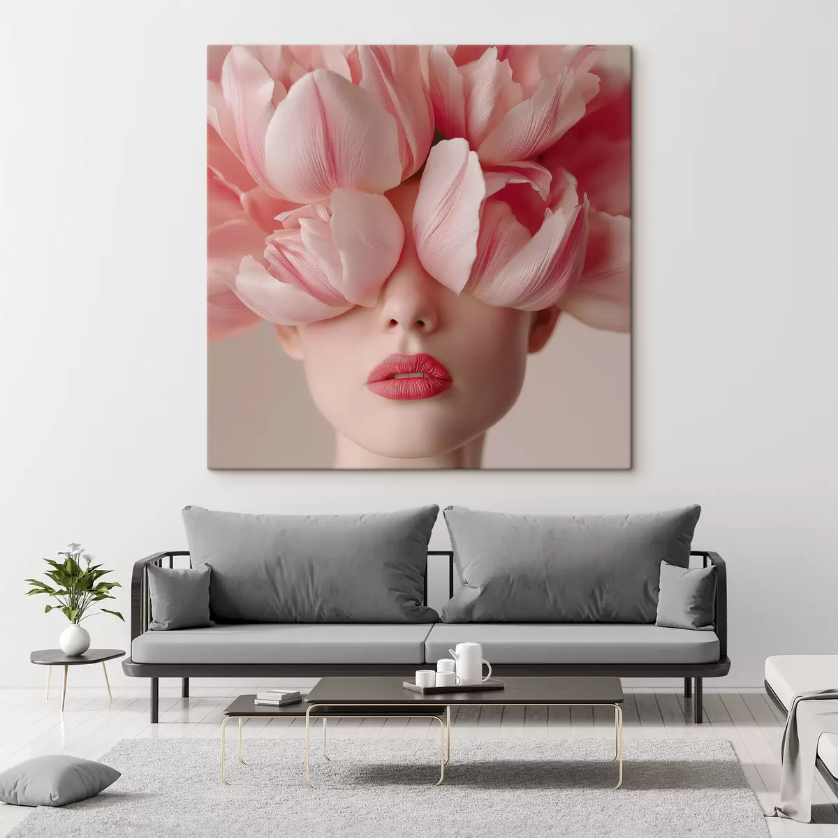 Quadri Ritratto femminile con petali rosa Nr s47920