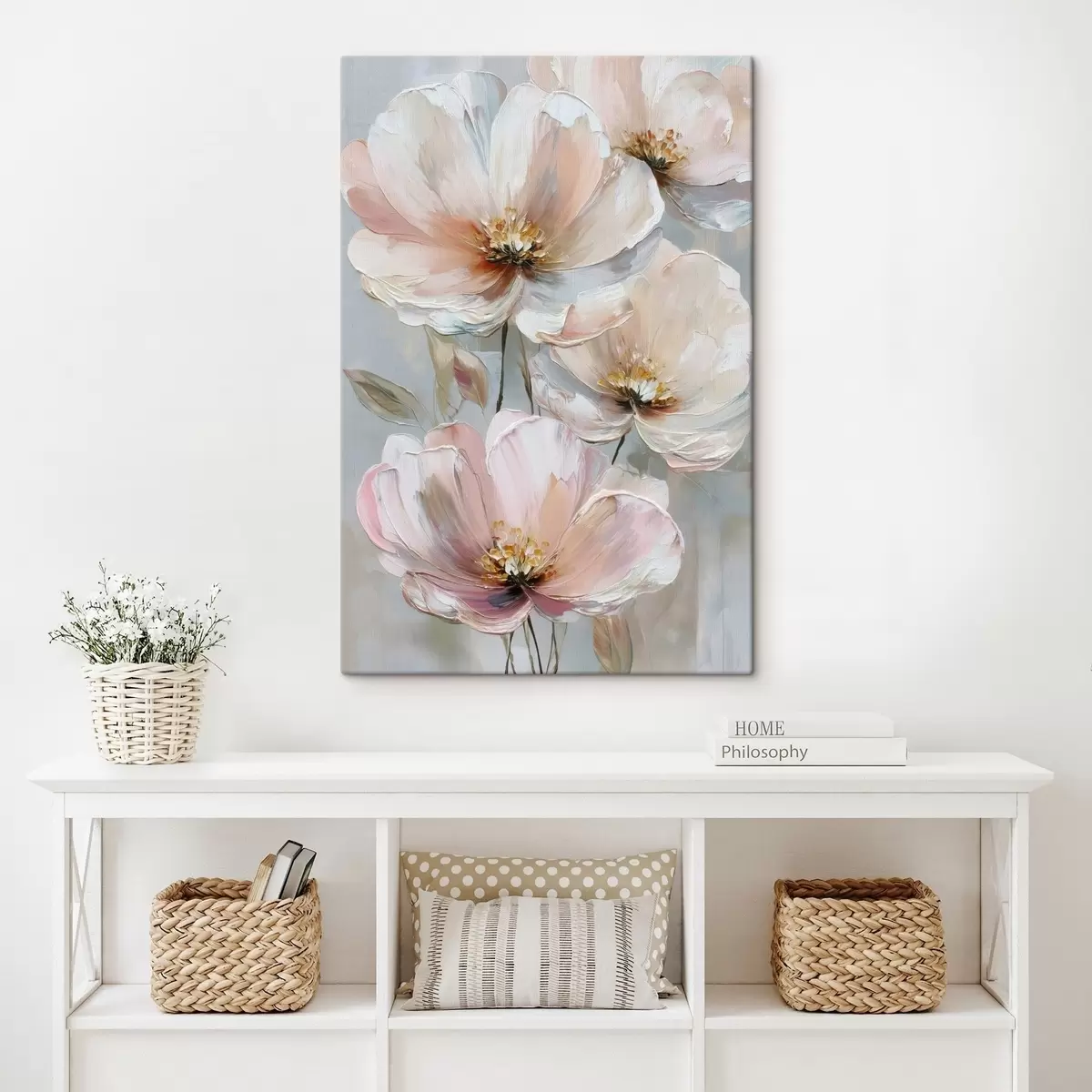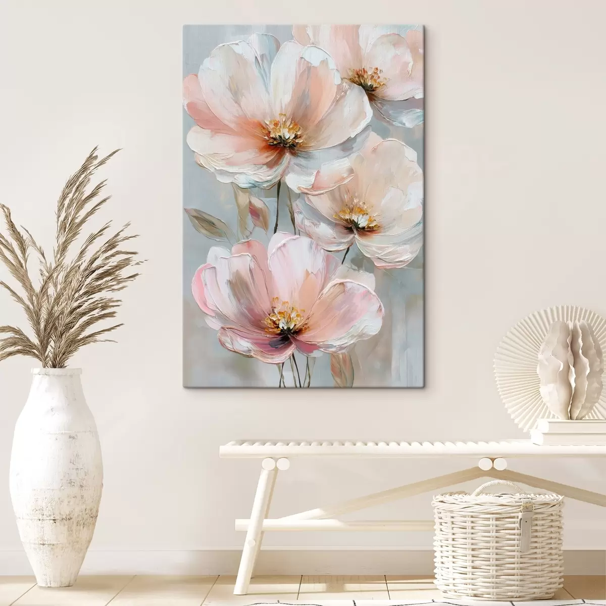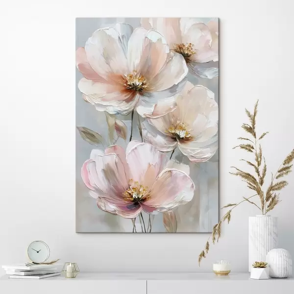 Quadri Fiori bianco-rosa con pennellate espressive in stile pittura a olio Nr s47962