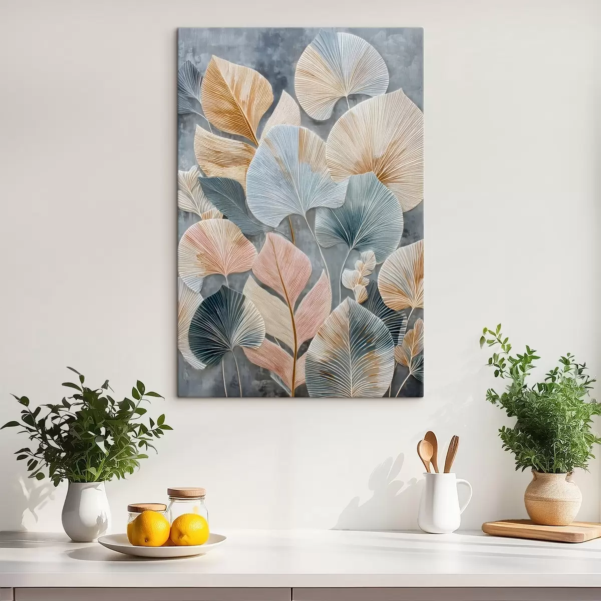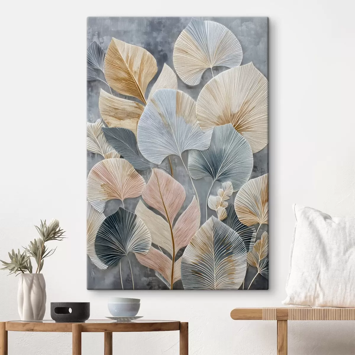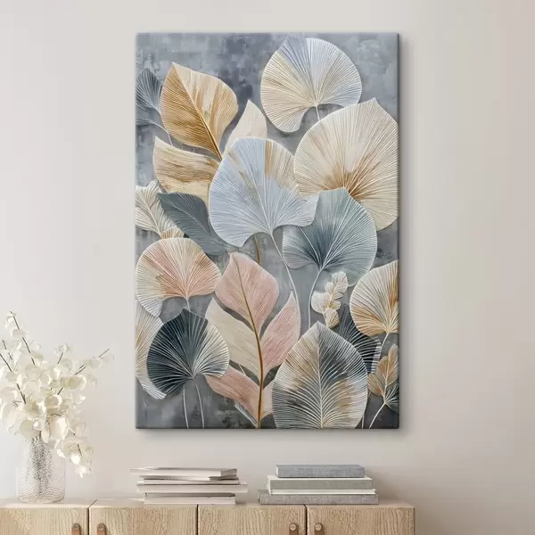 Quadri Fogliame decorativo multicolore con texture pronunciata su sfondo scuro Nr s47964