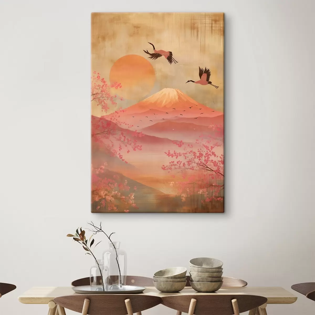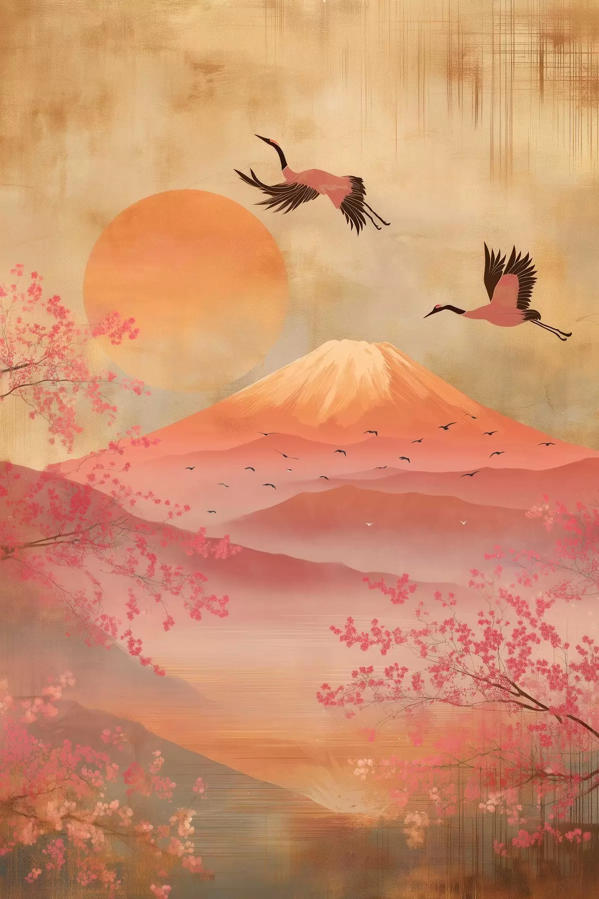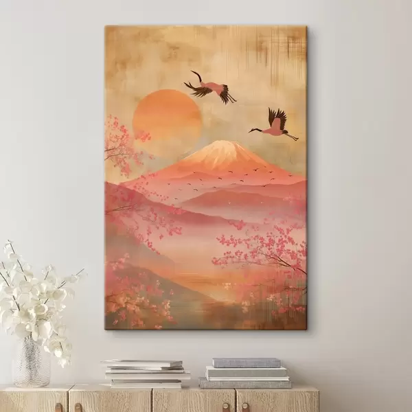 Quadri Gru contro il sole e le montagne: illustrazione in stile arte digitale Nr s47992