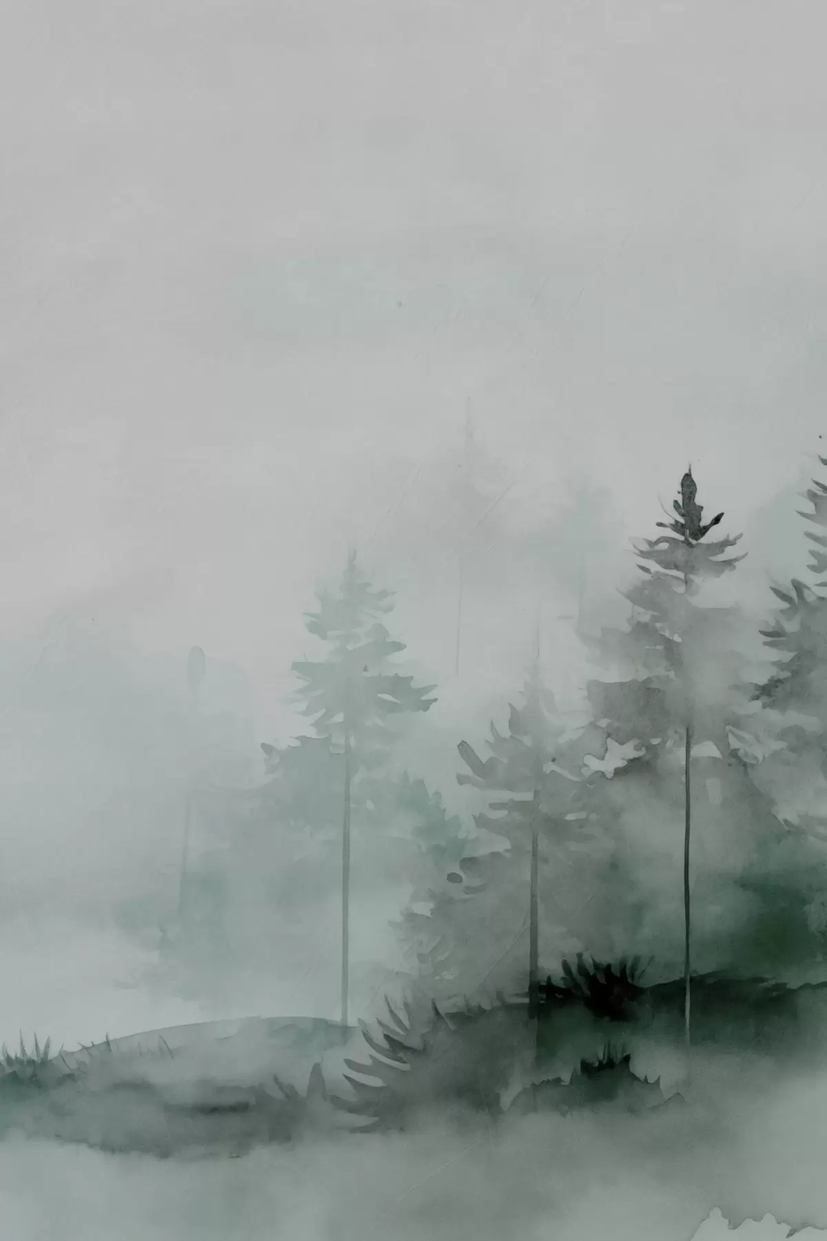 carta da parati Abeti nella foresta, imitazione ad acquerello nr. s47998