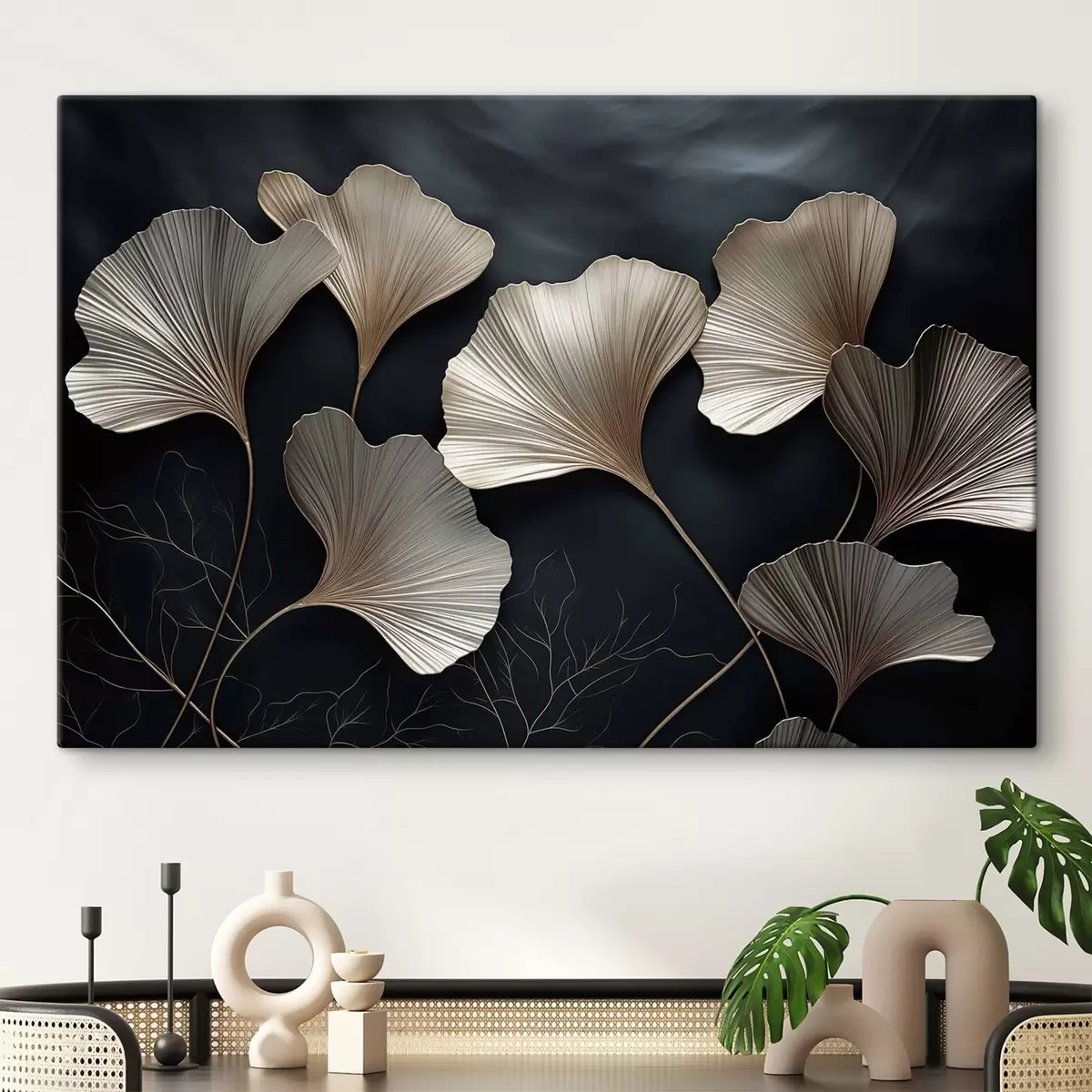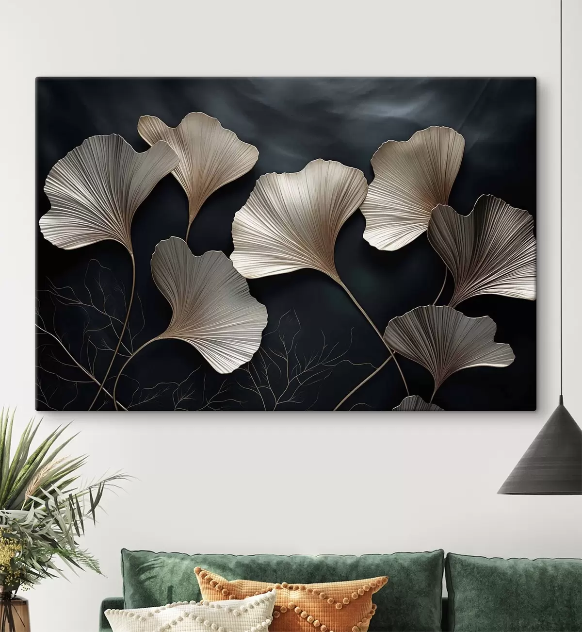 Quadri Foglie di ginkgo su sfondo scuro Nr s48008