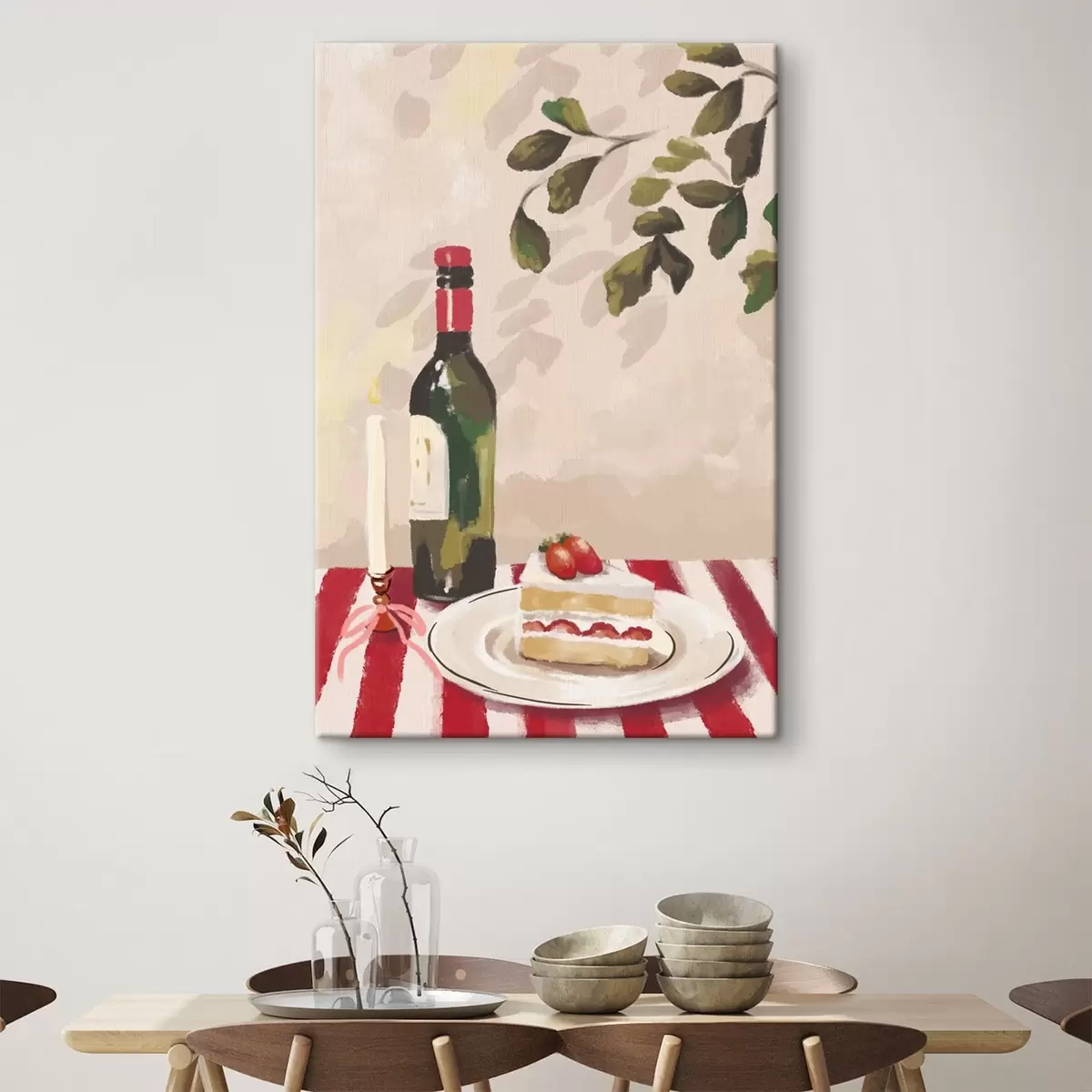 Quadri Natura morta con vino, candela e torta Nr s48024