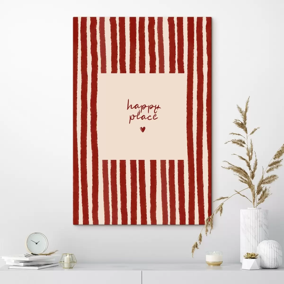 Quadri Strisce rosse con testo "happy place" Nr s48025