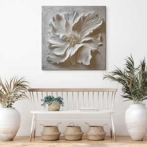 Quadri scultura floreale in gesso bianco a rilievo Nr s48065