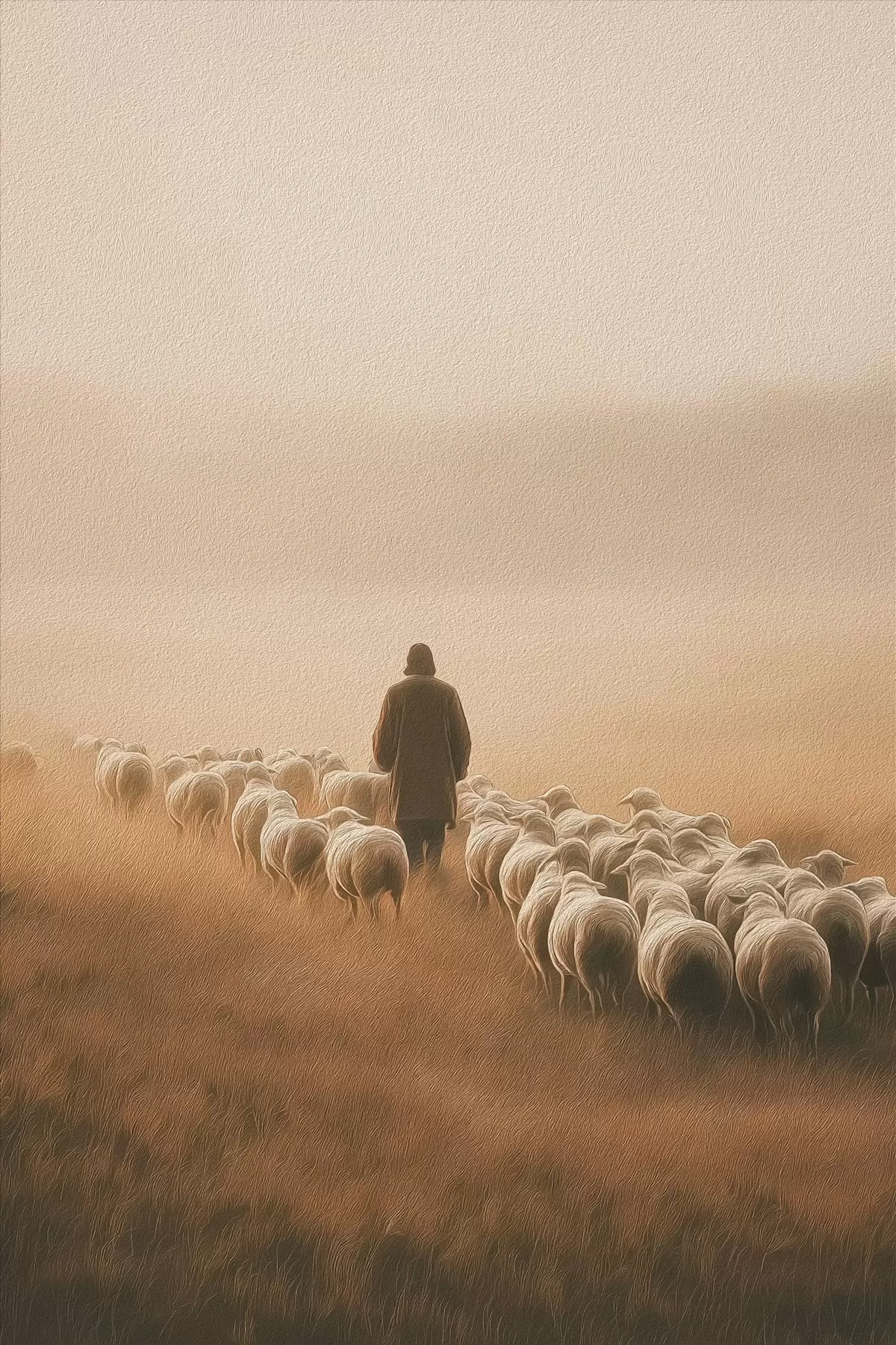 carta da parati pastore che cammina con il gregge di pecore in un campo aperto nr. s48077