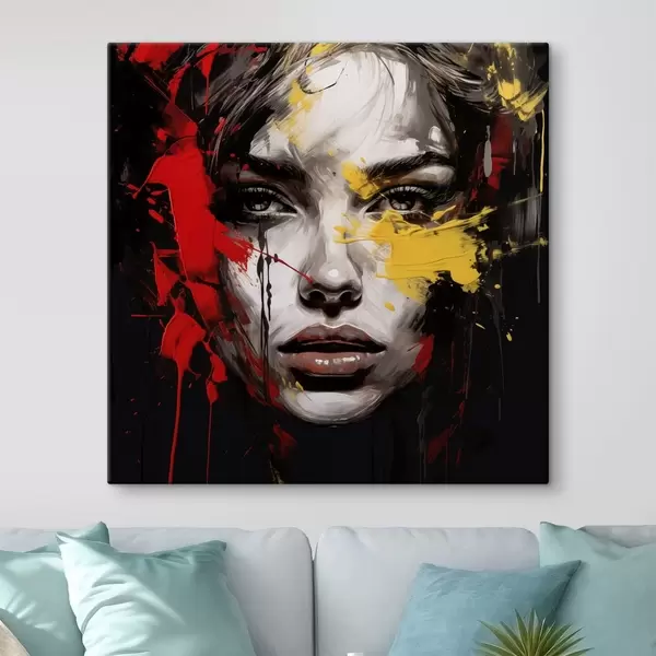 Quadri Ritratto di donna con pennellate rosse e gialle Nr s48089